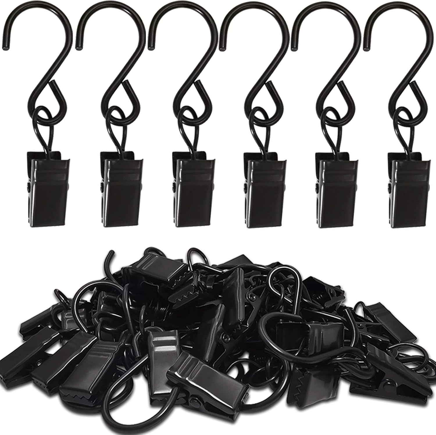 Stainless Steel S Hooks Curtain Clips, 50 Pack Hanging Party Lights Clips Hangers Gutter Photo, Art Craft Display, 2.4 Inch Long, Black