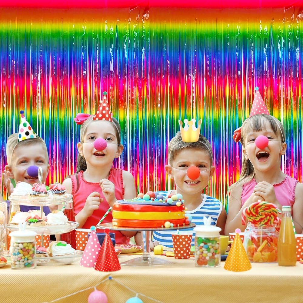 - Color: the colorful fringe curtain set is in dark rainbow; They are shiny and brightly under the light good decorations for your amazing parties.
