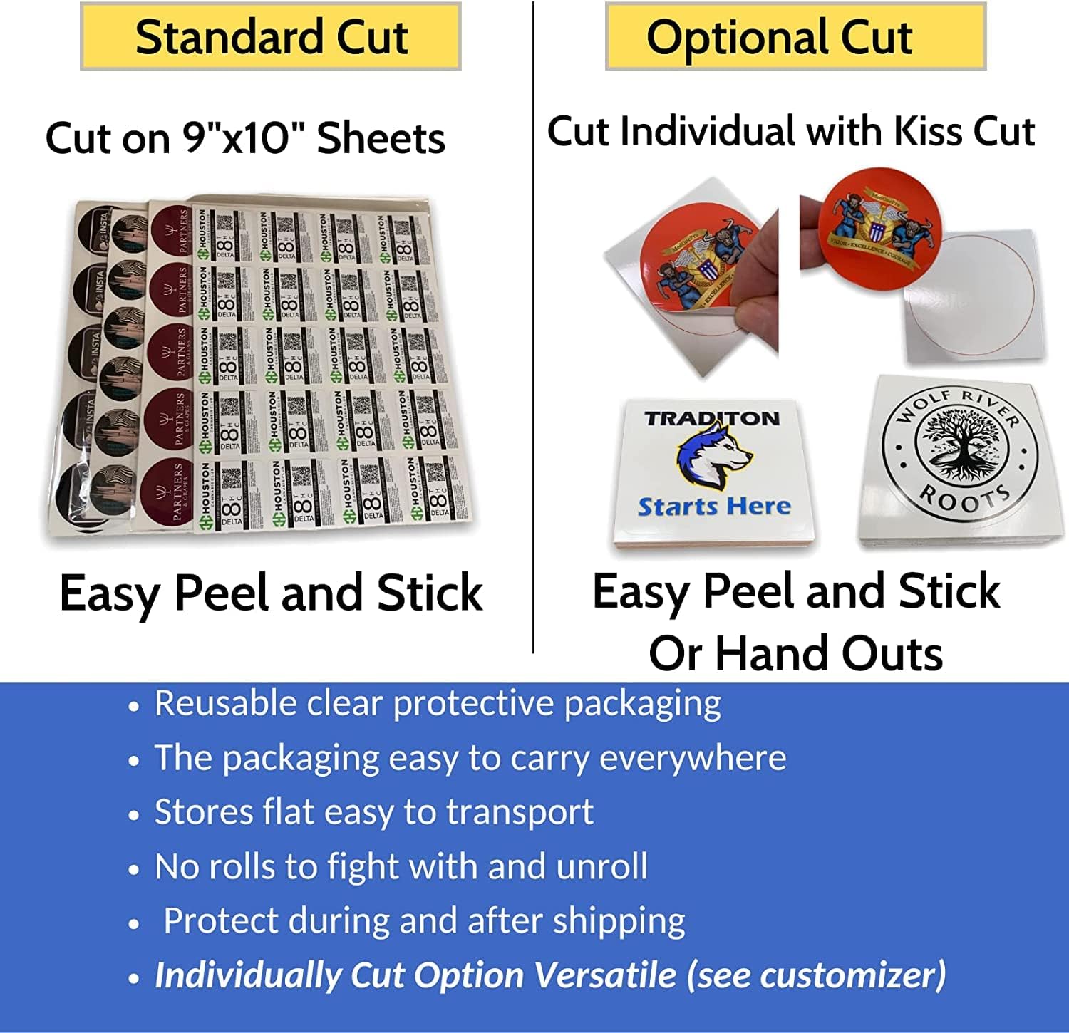 Custom Stickers Vinyl Waterproof Dishwasher Safe, UV Resistant 1.5-10 in. Make Your Own Personalized Stickers Labels for Your Brand, Text Image, or Logo. Made USA