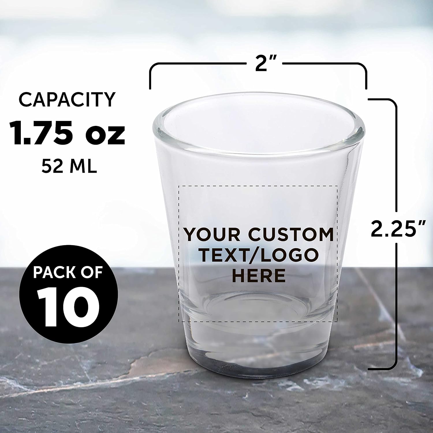 Custom Shot Glasses 1.75 oz. Set of 10, Personalized Bulk Pack - Great for Wedding Favors, Bachelorette Party Decorations, Party Fovors, Color Bottom - Clear