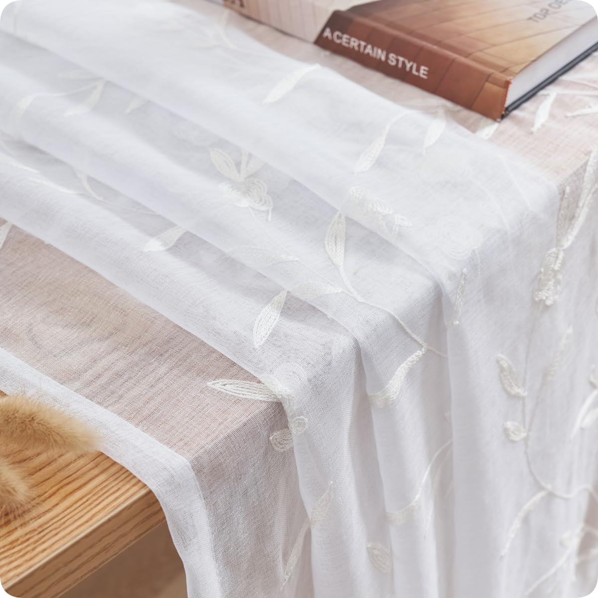 - ☀EMBROIDERY SHEER CURTAINS ARE EASY TO CARE. Machine wash cold, gentle cycle, tumble dry low, light iron as needed.