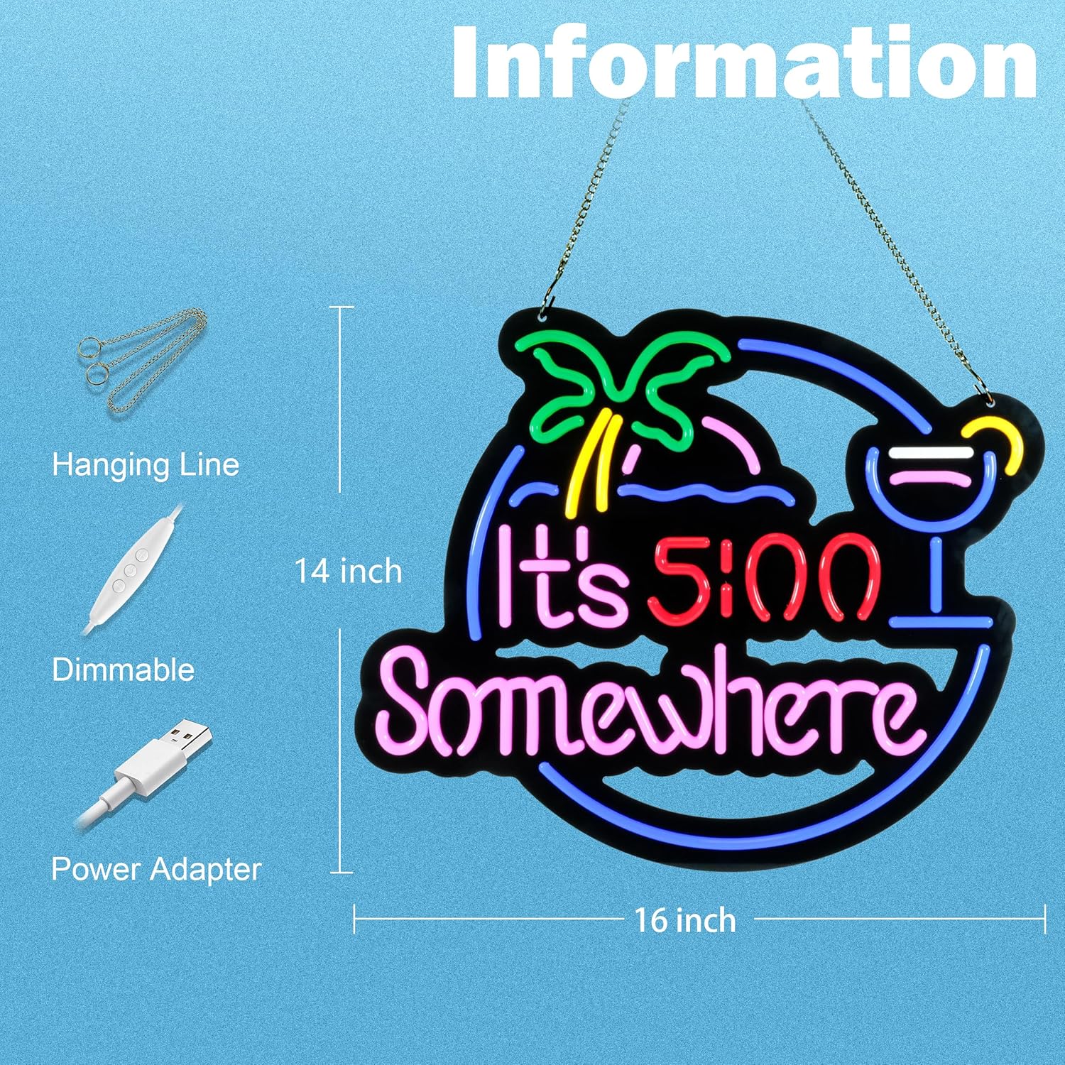 Ultrathin Its 5 00 O'clock Some Where Neon Sign Art Wall Lights for Bedroom Windows Glass Hotel Pub Cafe Wedding Birthday Party Gifts
