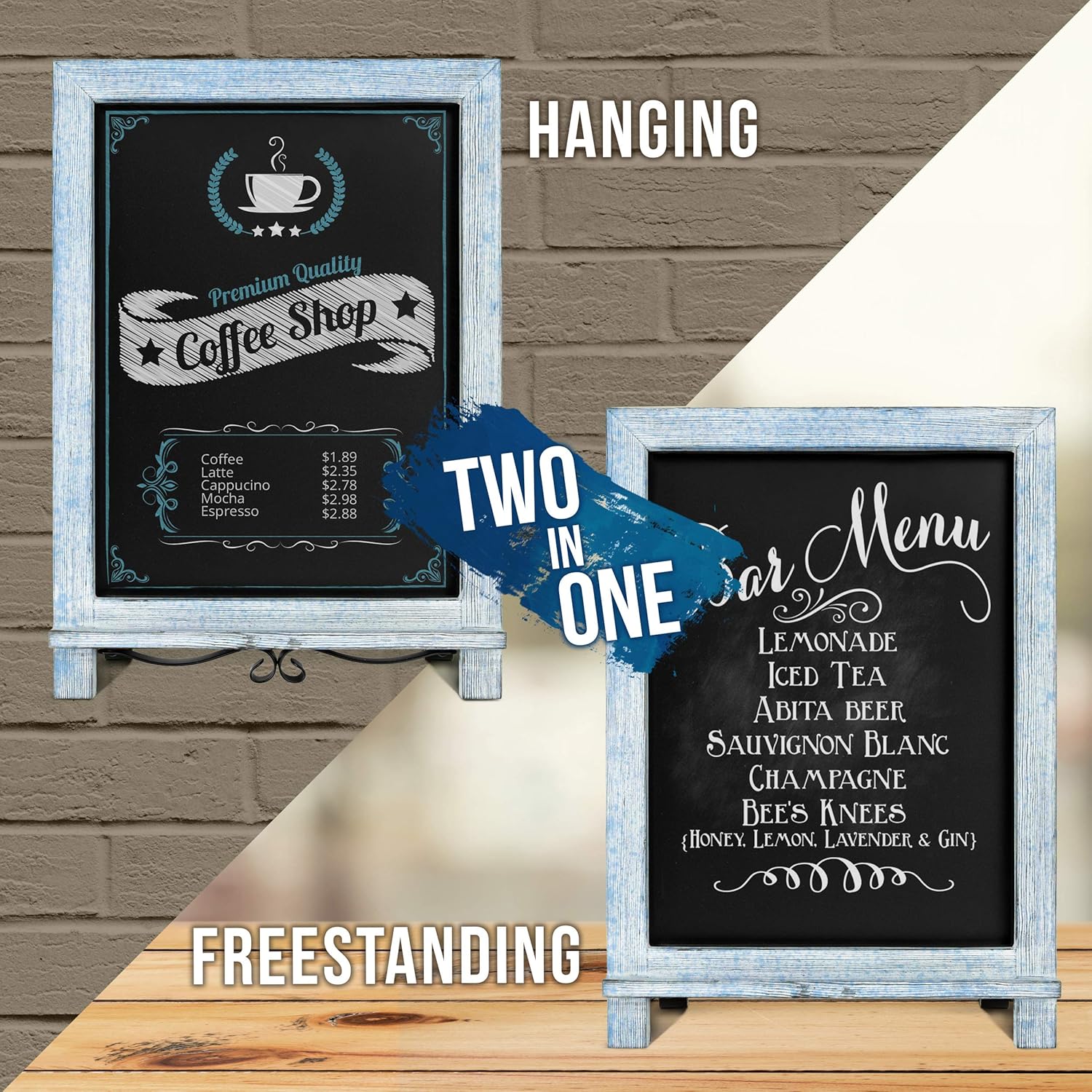 - VERSATILE DESIGN - Our small Chalkboard Easel was designed with maximum versatility. It can be used as a FREESTANDING chalkboard on tabletops or as a HANGING wall chalkboard. Our Patent Pending Design includes foldable metal legs and wall hanging hardware so its ready to use straight out of the box.