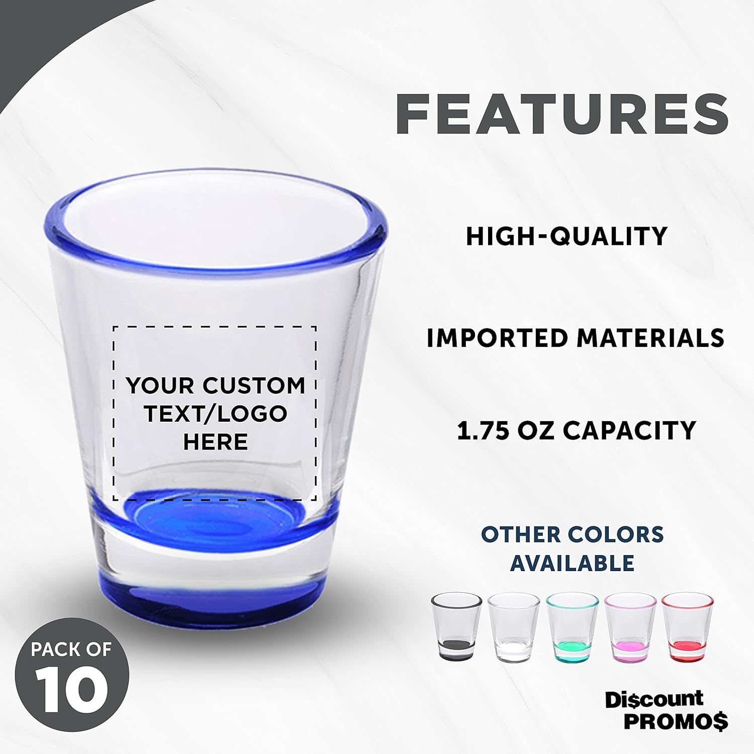 Custom Shot Glasses 1.75 oz. Set of 10, Personalized Bulk Pack - Great for Wedding Favors, Bachelorette Party Decorations, Party Fovors, Color Bottom - Blue