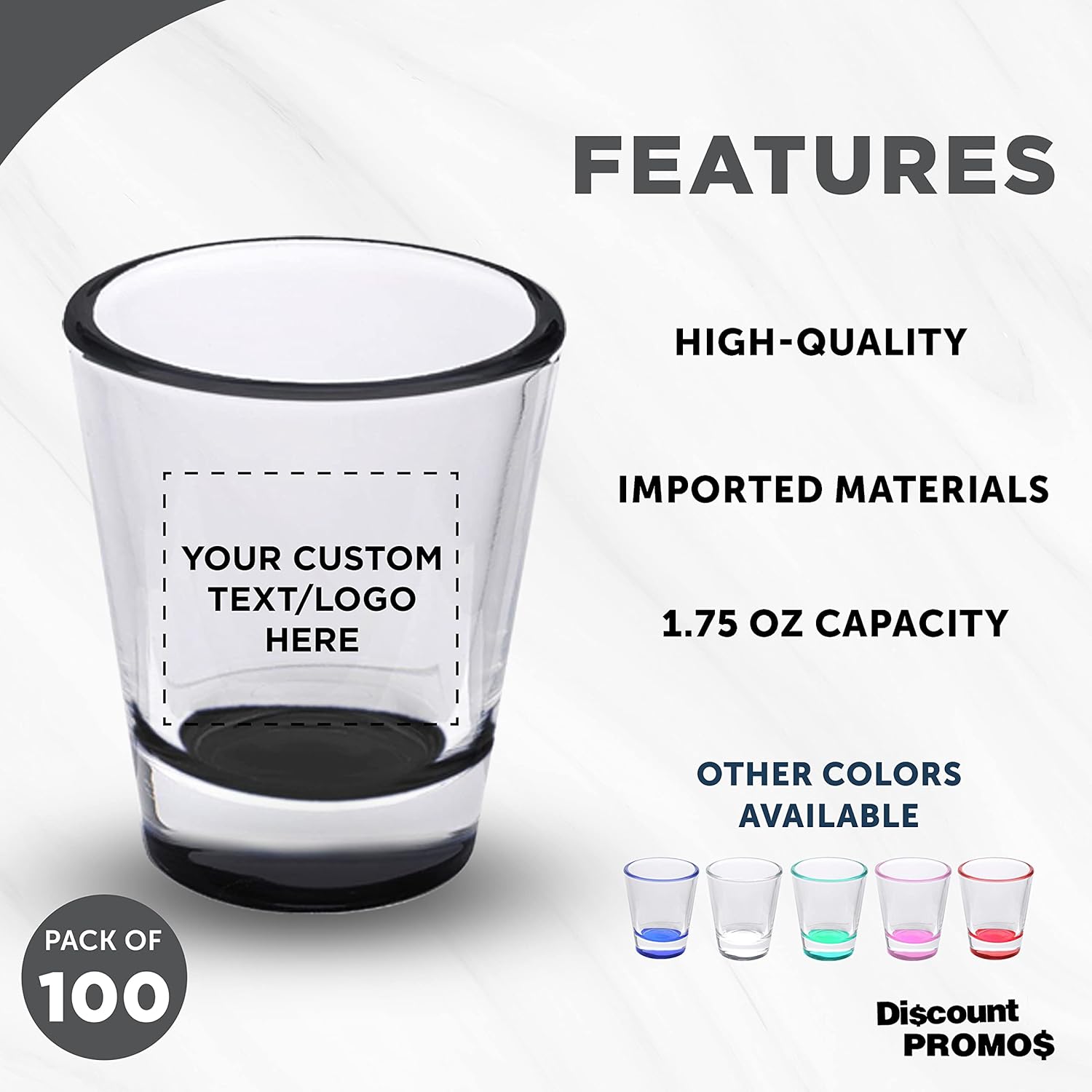Custom Shot Glasses 1.75 oz. Set of 100, Personalized Bulk Pack - Great for Wedding Favors, Bachelorette Party Decorations, Party Fovors, Color Bottom - Black