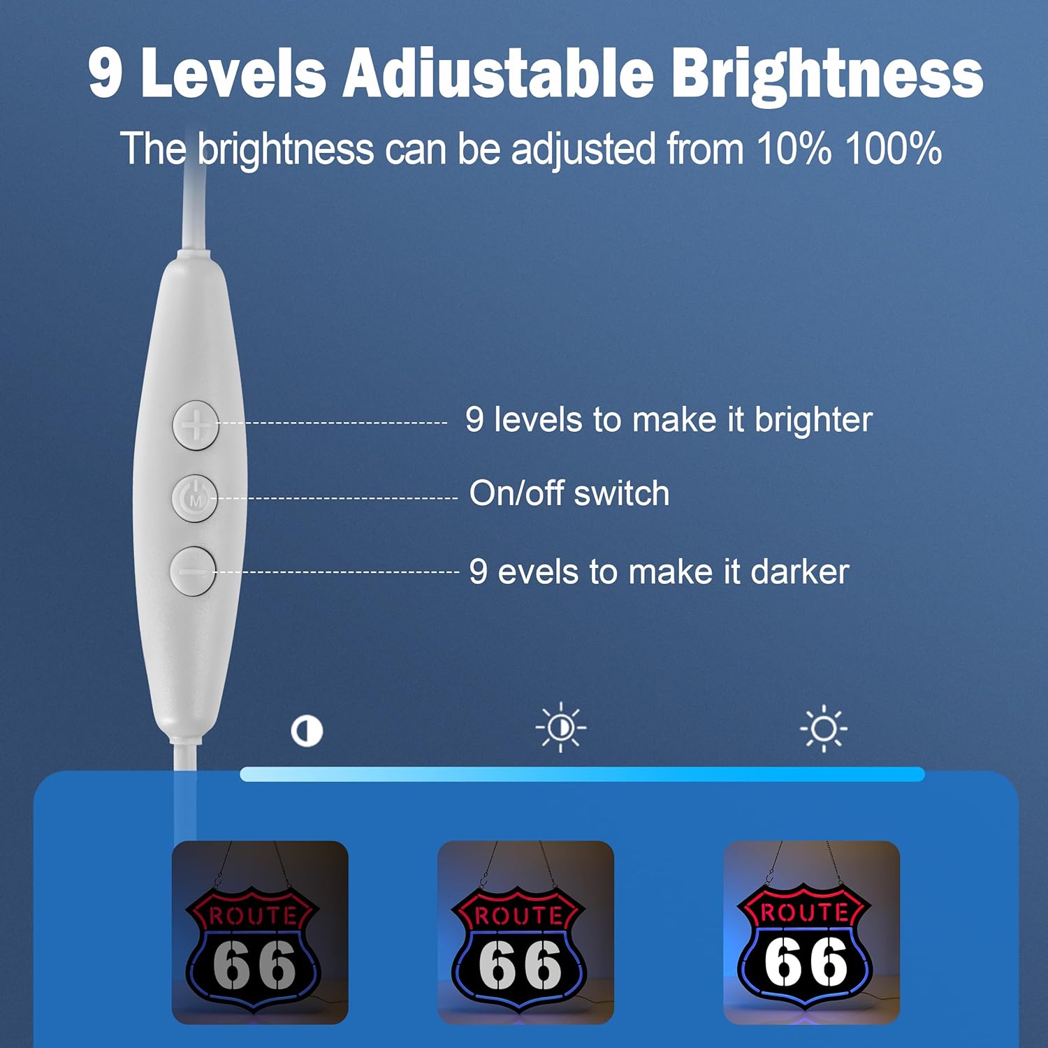 Ultrathin Route 66 Neon Sign Art Wall Lights for Bedroom Windows Glass Hotel Pub Cafe Wedding Birthday Party Gifts