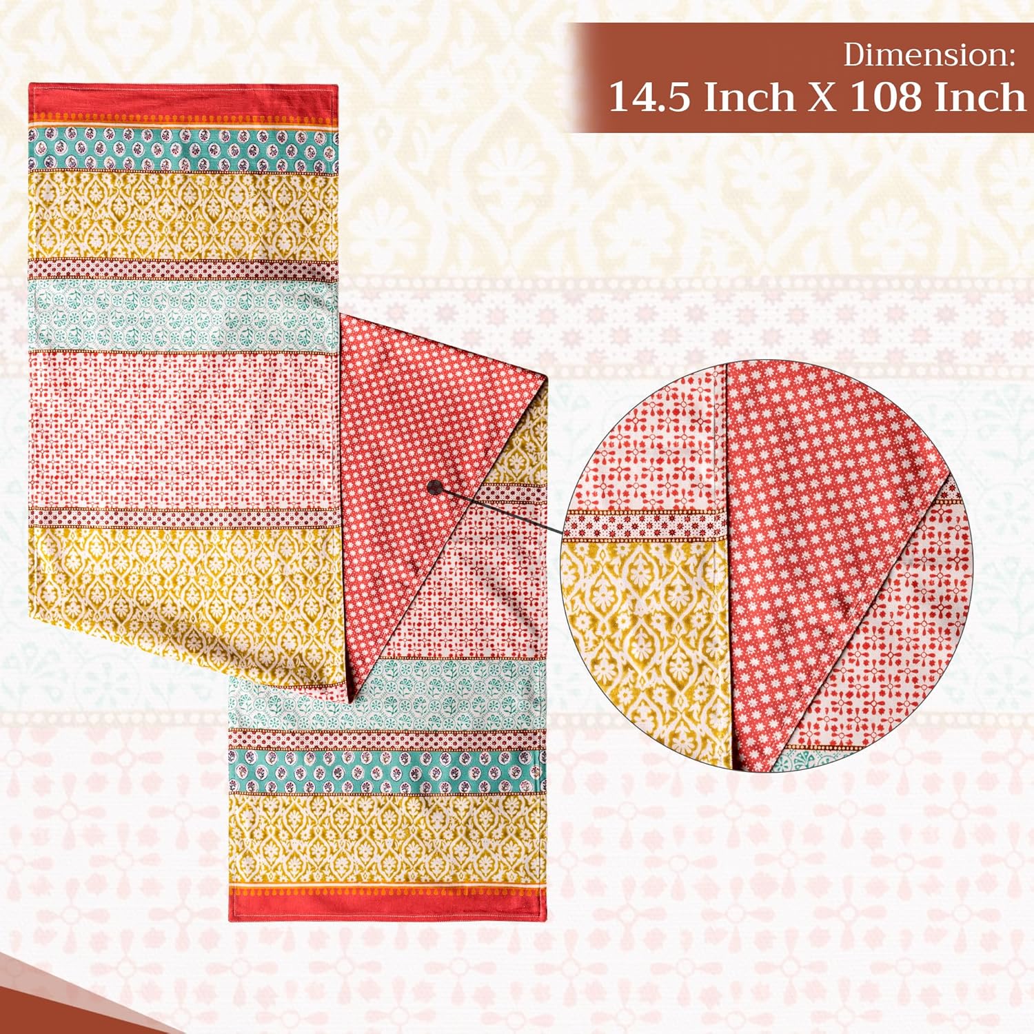 - Easy care & maintenance: Crafted from 100% cotton, this table runner is machine washable with like colors, do not bleach. Tumble dry on low and warm iron if needed. Durable and easy to maintain for everyday or seasonal use.