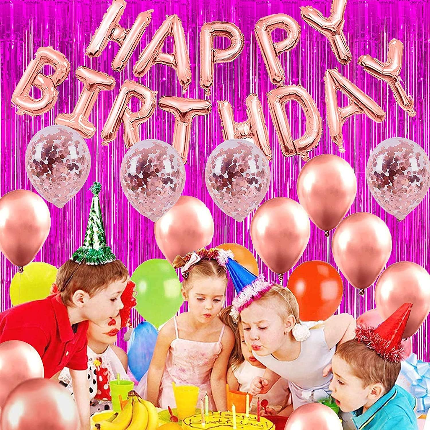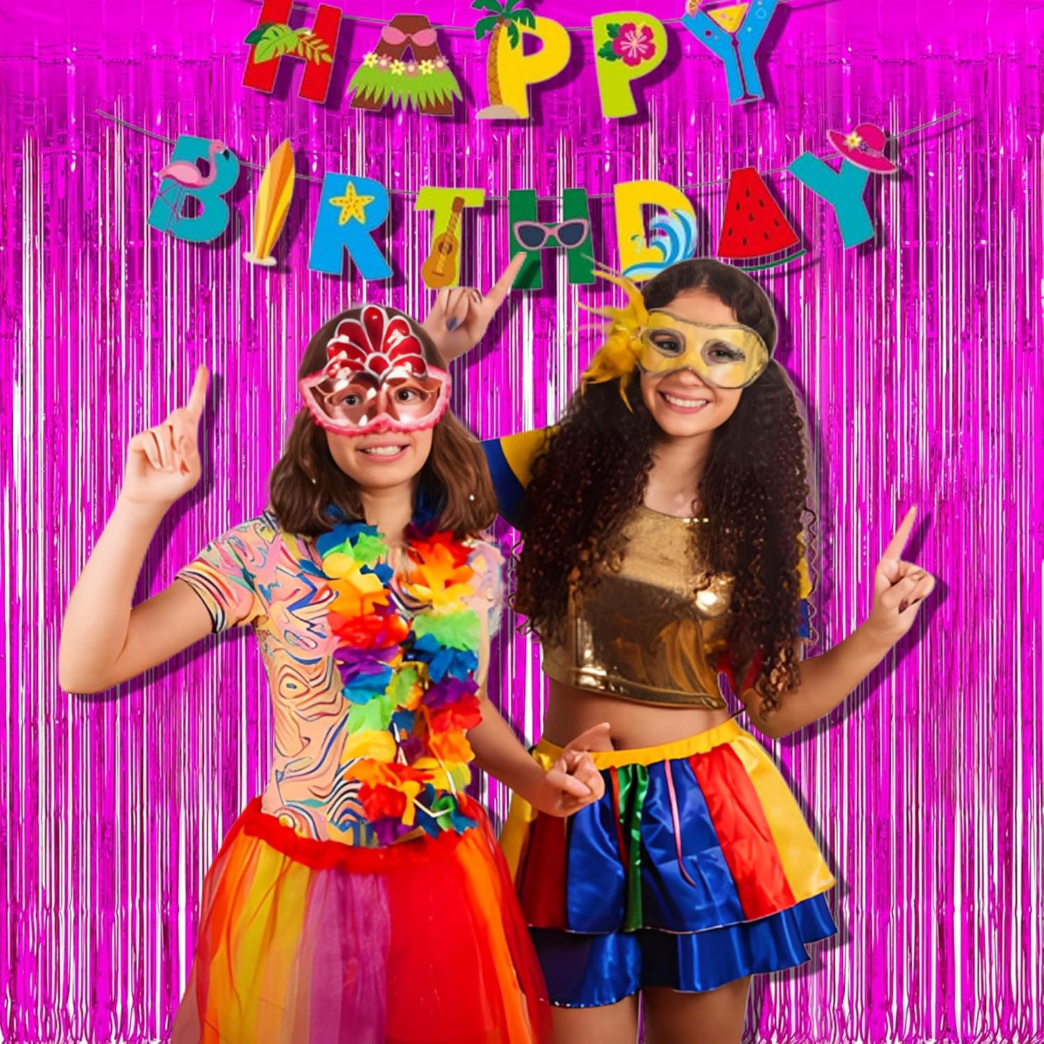Foil Fringe Curtain Party Decorations - Hot Pink Photo Backdrop Tinsel Steamers Curtains for Tropical Hawaiian Theme Birthdays Christmas Valentine Bachelorette Parties