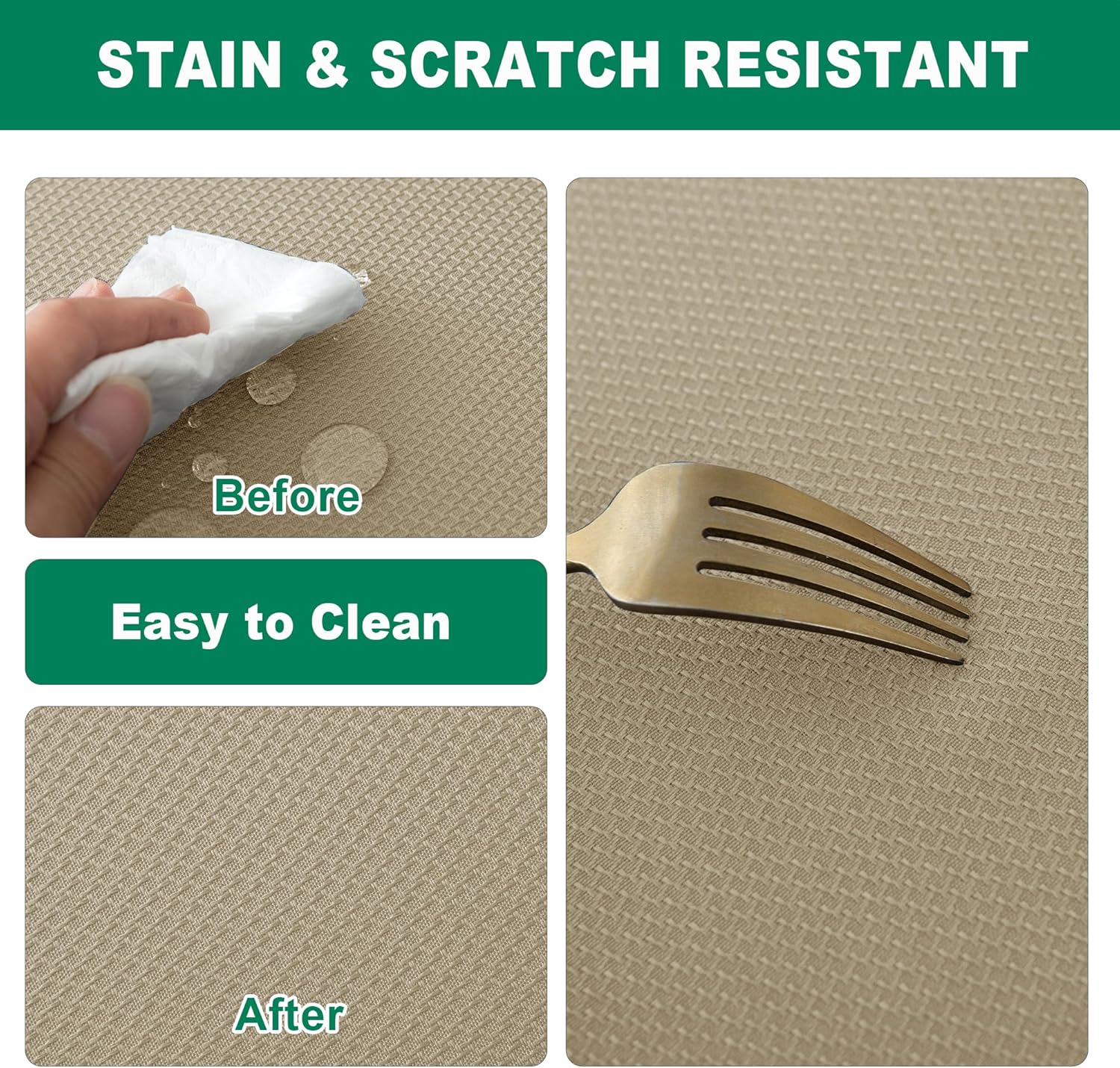 - Water Resistant & Easy Care: Featuring excellent water-resistant properties, this tablecloth ensures liquids and spills bead up on the surface. Simply wipe clean with a damp cloth for quick and effortless maintenance, making cleanup a breeze