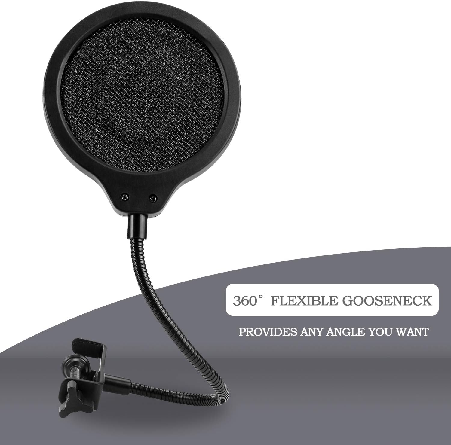 - ♫ Flexible Mic Mask Shield ♪ Swivel 360° flexible gooseneck is strong and pliable, supports the pop shield head at any angle to apply different placements and keep it in place.