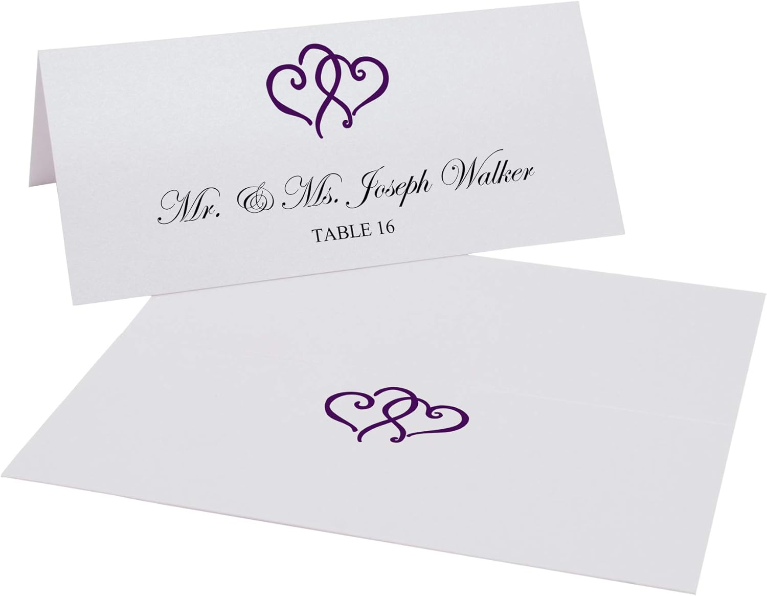 Linked Hearts Place Cards, Eggplant (Choose Color), Set of 25, Pre-cut and Scored - Wedding, Party, Dinner, and Special Events - Made in the USA