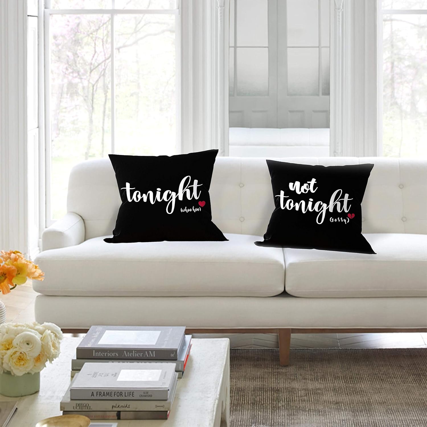 - Dual-sided Design: Enjoy the versatility of two charming patterns β "Tonight" and "Not Tonight." Playfully set the mood by flipping the pillow to match your desires, adding a touch of fun to your bedroom or sofa.