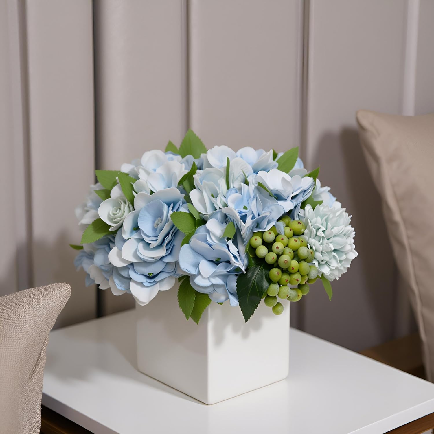 LADADA Fake Flowers in Ceramic Vase,Faux Hydrangea Flower Arrangements for Home Decor Artificial Flowers with Vase