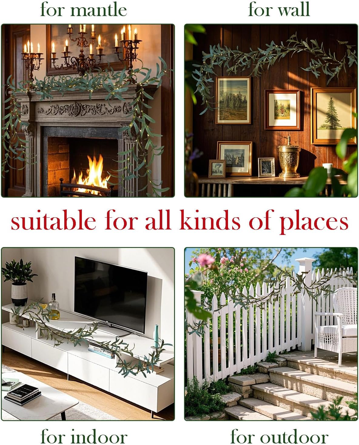 - π Realistic Greenery Vine: Leaf garland are elaborately crafted with delicate brown bark texture.The silvery-green olive leaves have realistic veining and detail, bringing the look of nature to your home,Great gift for valentines