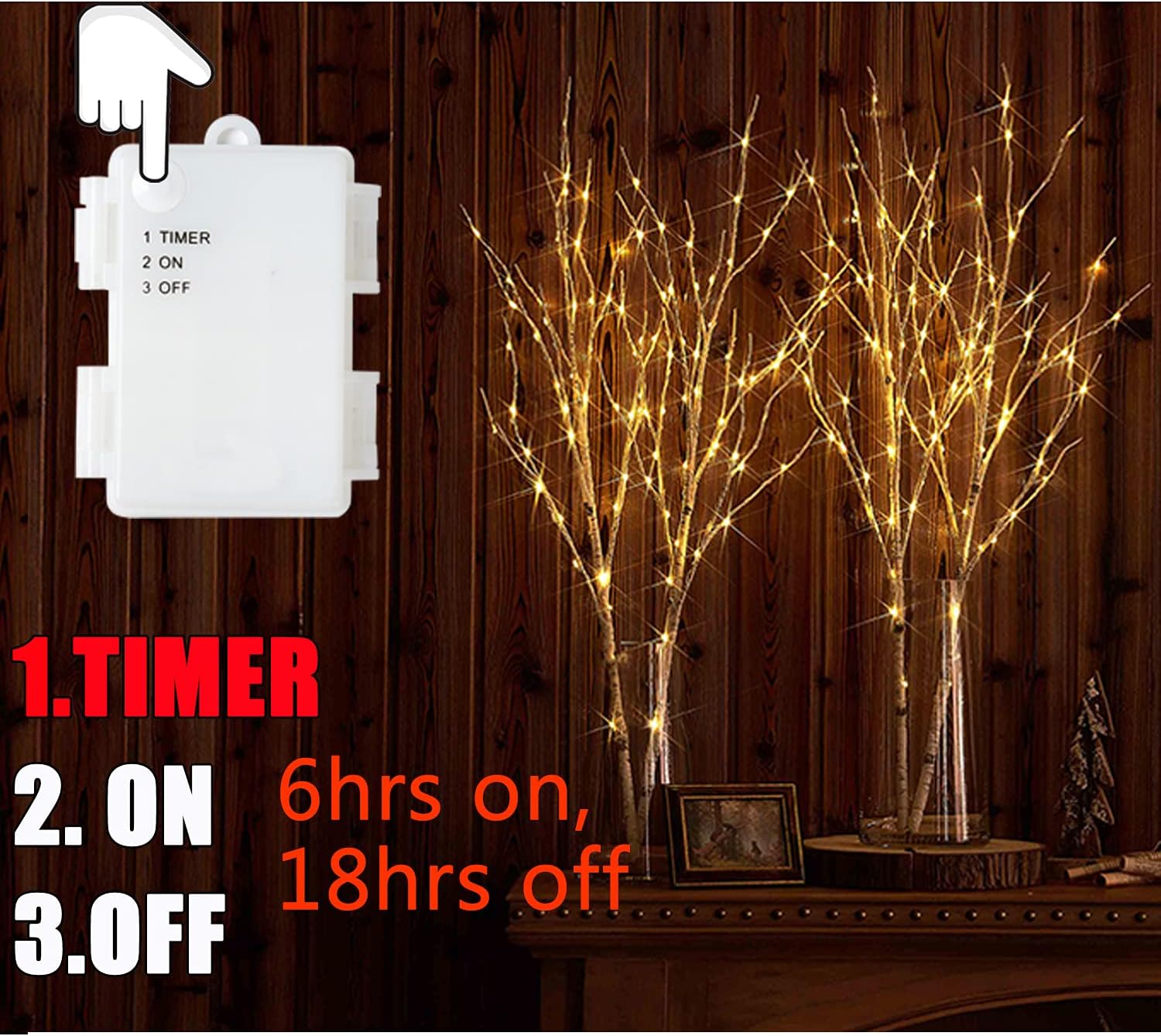 Fudios Birch Branch Lights with Timer for vase 100 LED Lighted Willow Twig 32IN Tall Battery Operated Home Party Indoor Outdoor use