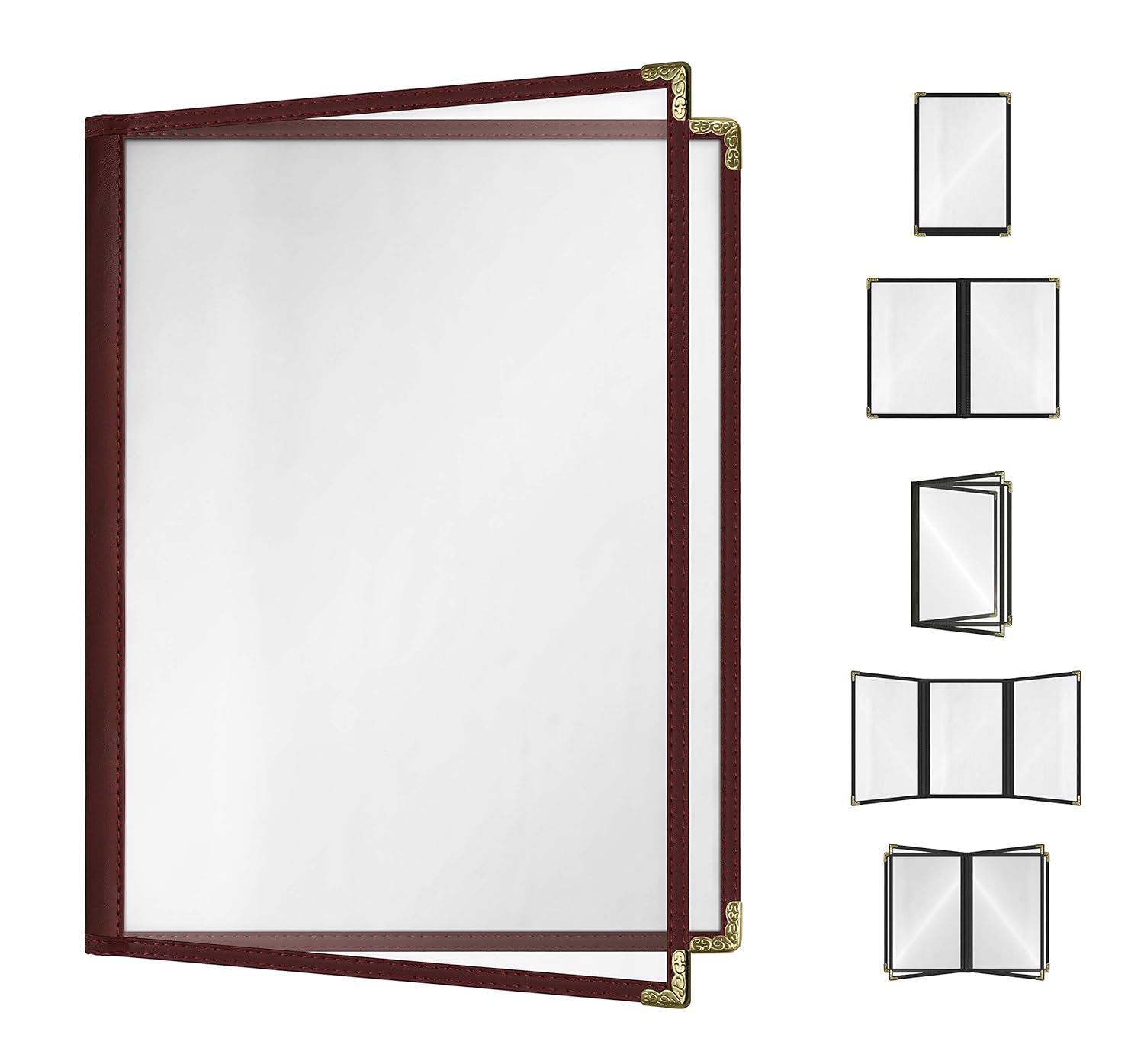 - ✔Crystal-Clear Vinyl with Enhanced Durability: Made from crystal-clear vinyl, the cover ensures excellent visibility while protecting menu pages from spills, stains, and daily wear. The double-stitched edges add strength and durability for long-lasting use in busy dining environments.