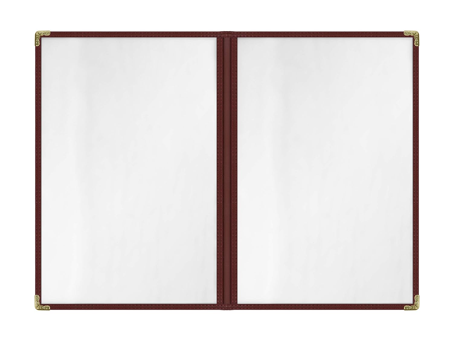 Goodsmart Restaurant Menu Covers – 25 Pack Burgundy 4-View 8.5" x 14", Side-Loading Vinyl & Plastic Menu Holders, Clear Menu Sleeves, Leather-Style Café Covers with Gold Corners