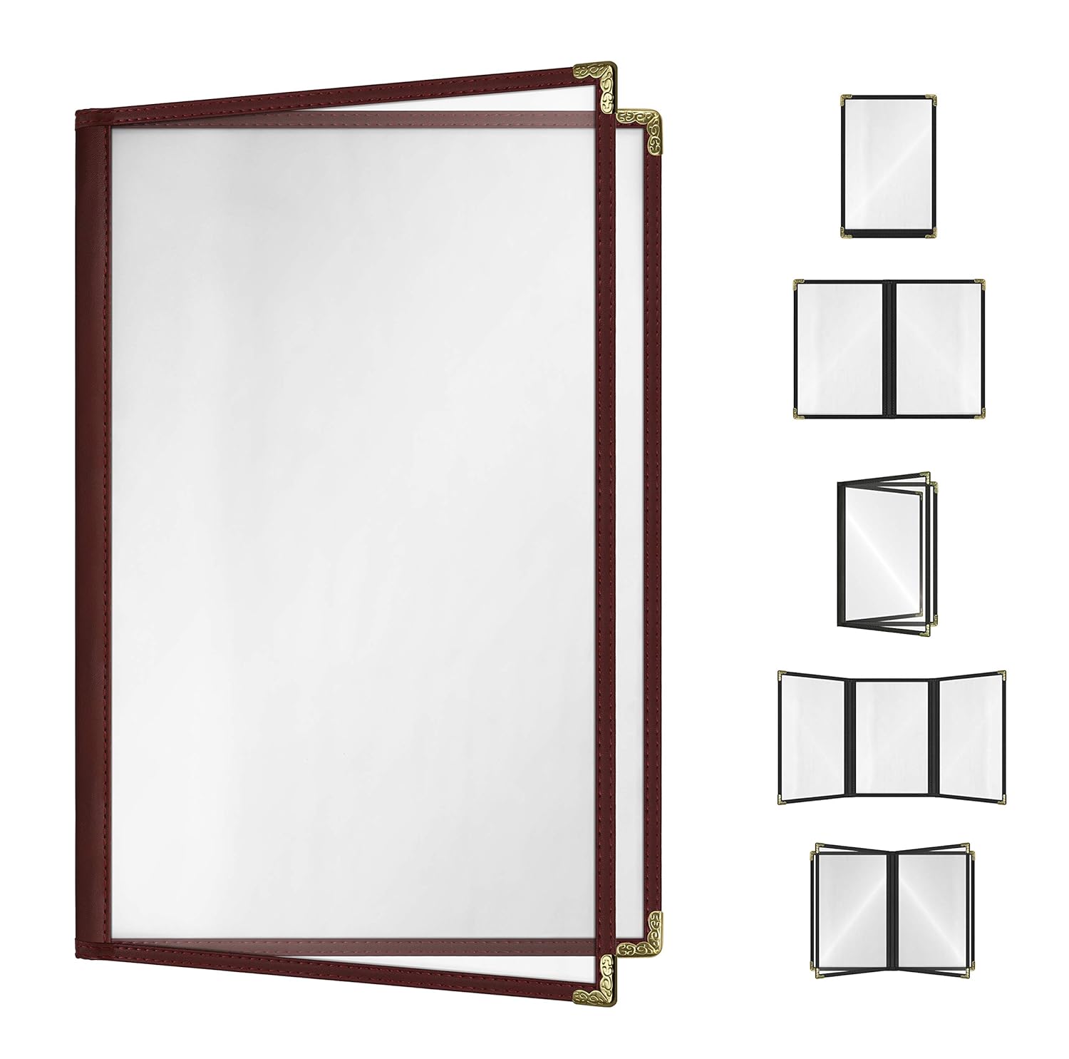 - ✔Durable and Protective Materials: Constructed with crystal-clear vinyl, the menu holders safeguard paper menus from spills, stains, and daily wear while ensuring clarity for easy readability. Double-stitched edges add extra durability, preventing damage from frequent handling.