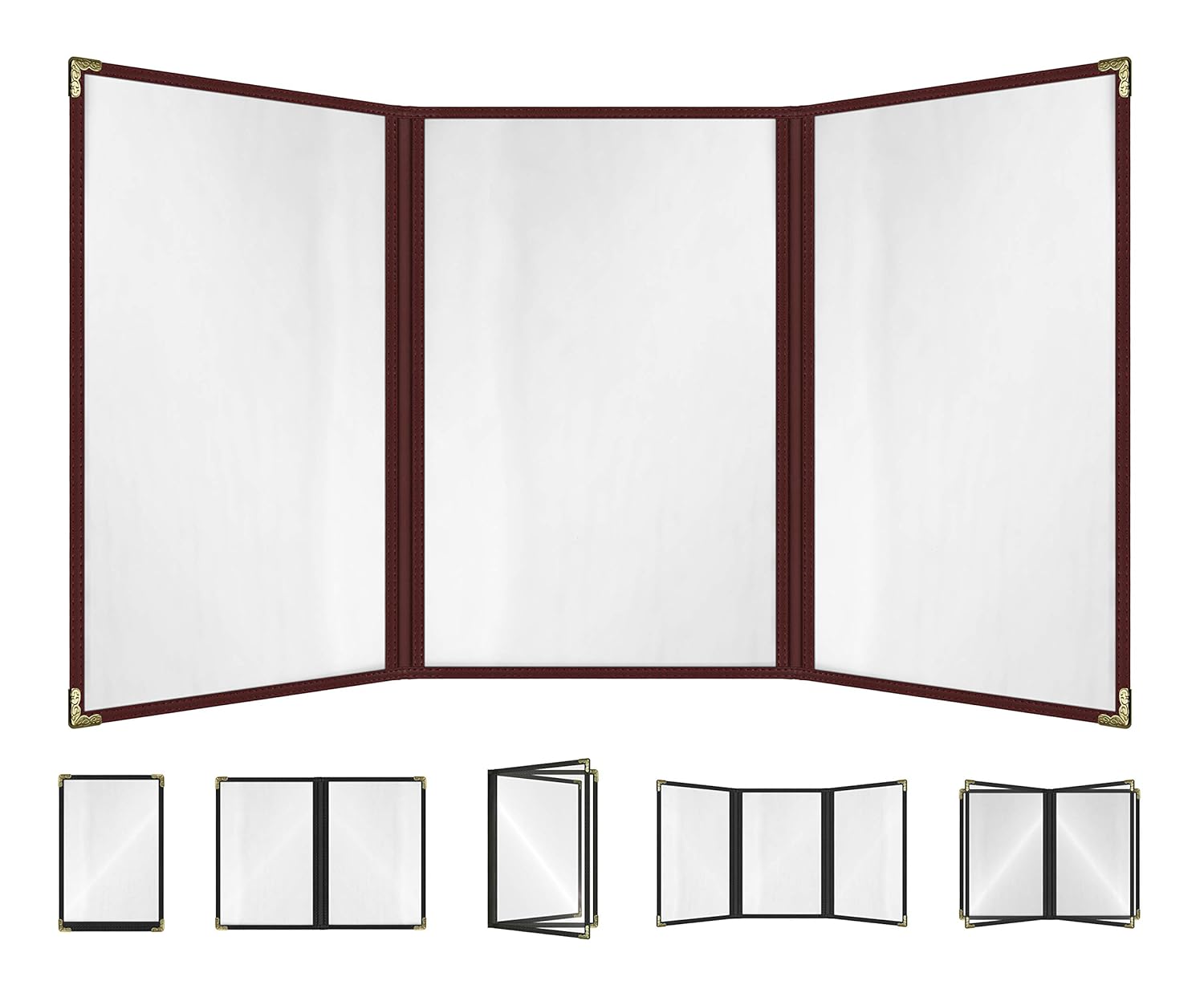 Goodsmart Restaurant Menu Covers – 25 Pack Burgundy 6-View Trifold 8.5" x 14", Side-Loading Vinyl & Plastic Menu Holders, Clear Menu Sleeves, Leather-Style Café Covers with Gold Corners