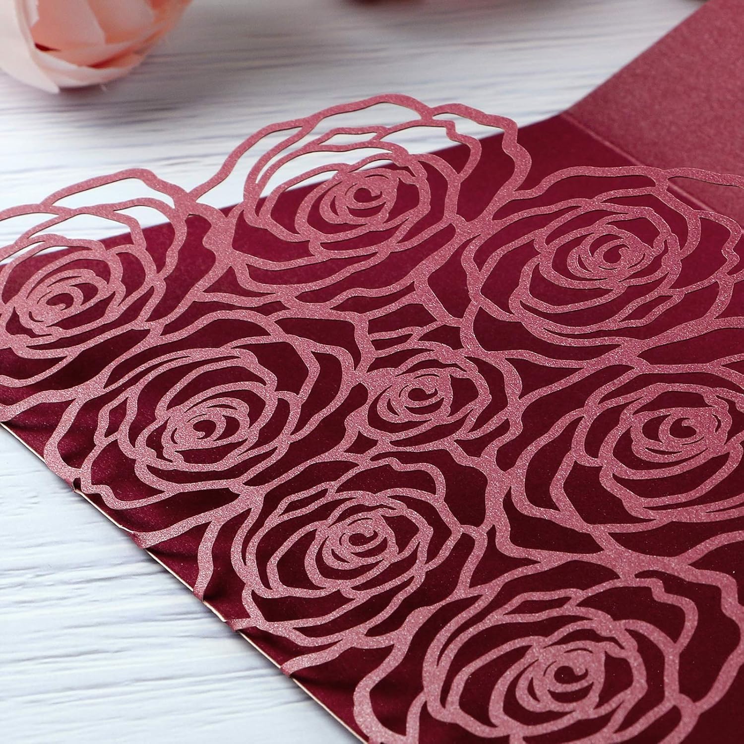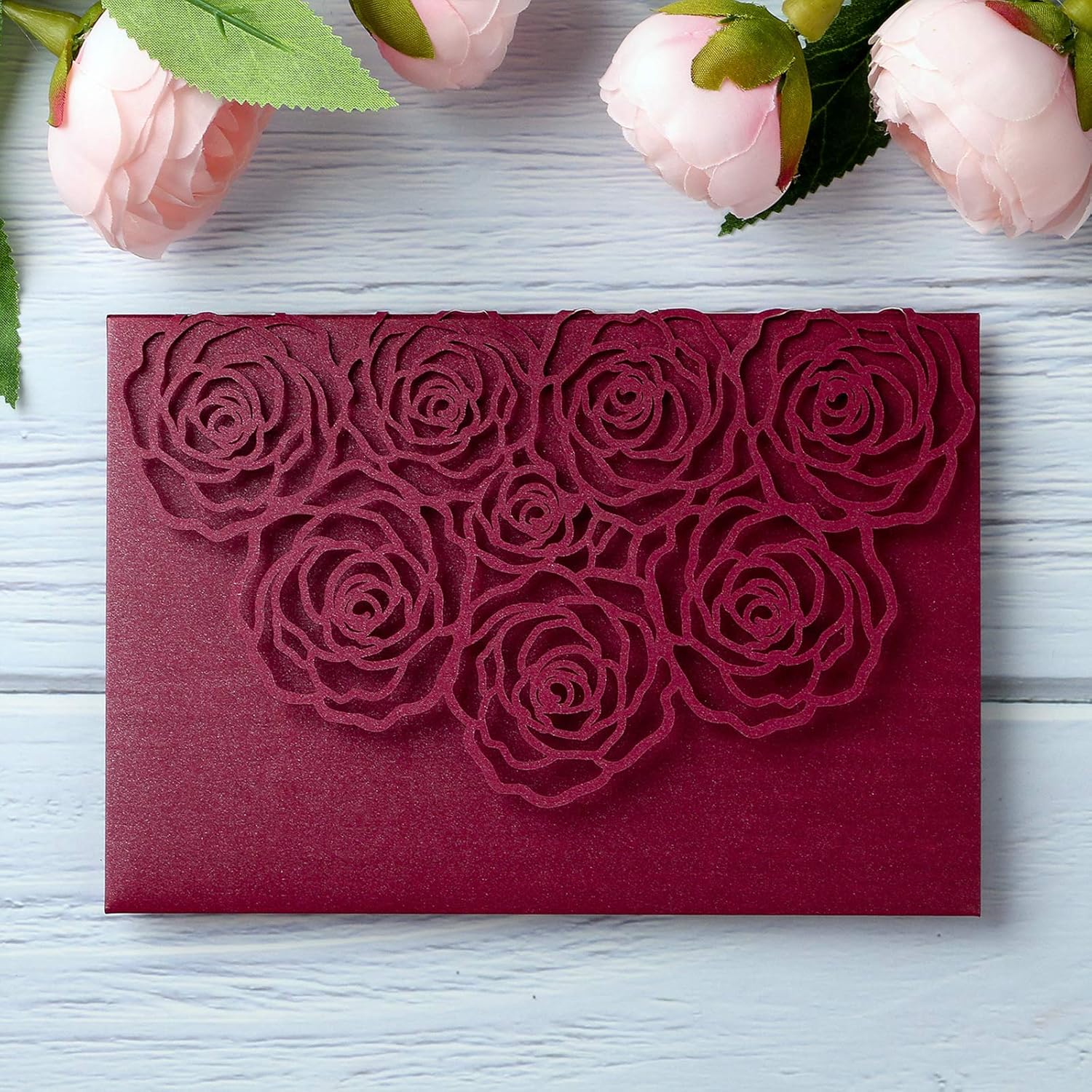 20 Pcs Laser Cut Wedding Invitations Card Pocket with Envelope for Birthday Party Baby or Bride Shower Invite suitable for 5 * 7 Inches Insert Paper (Burgundy)