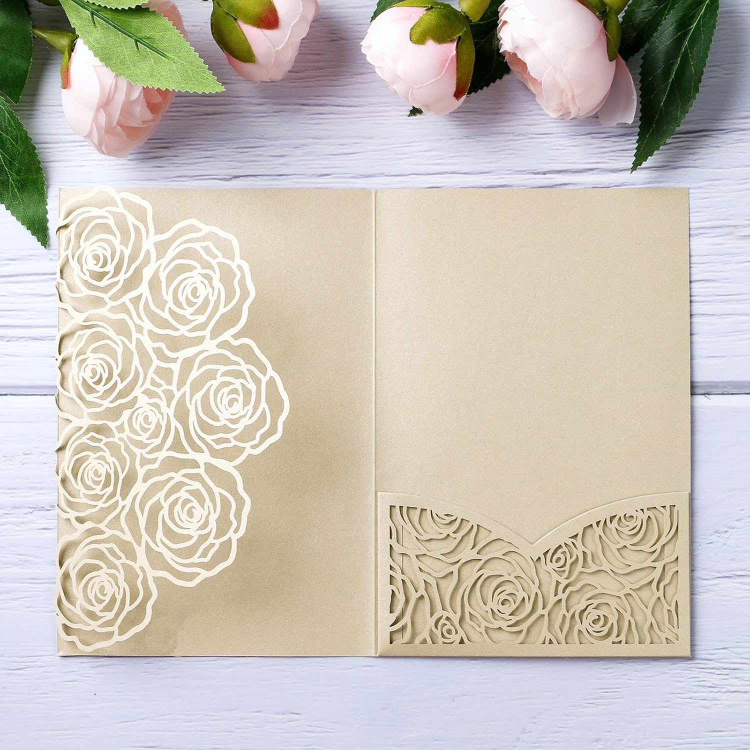 20 Pcs Laser Cut Wedding Invitations Card Pocket with Envelope for Birthday Party Baby or Bride Shower Invite suitable for 5 * 7 Inches Insert Paper (Champagne)