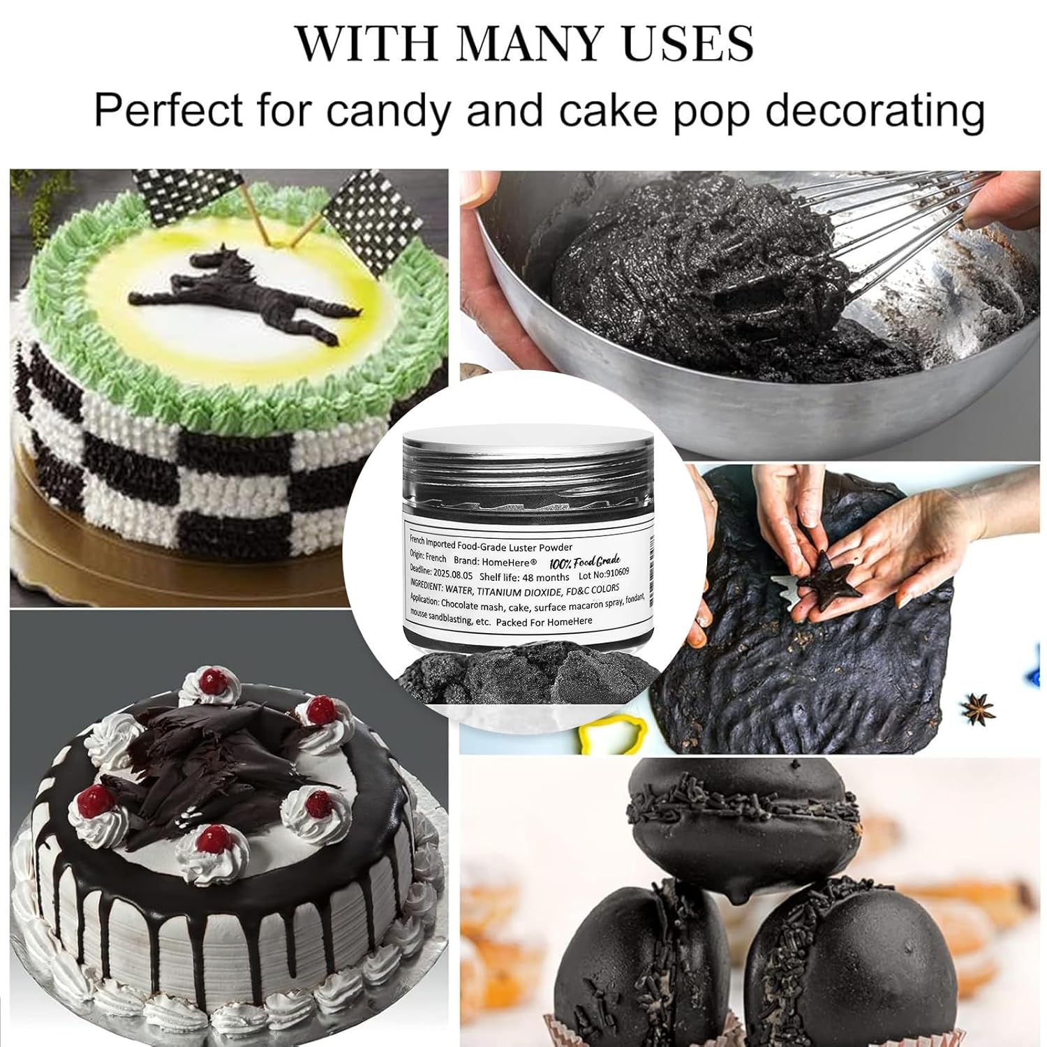 HomeHere Edible Luster Dust Food-Grade Glimmer Powder Glitter for Cake Decorating 7g, Edible Sprinkle Glitter for Cocktails Drinks Baking Candy Dessert Chocolate Vegan Tasteless, Black