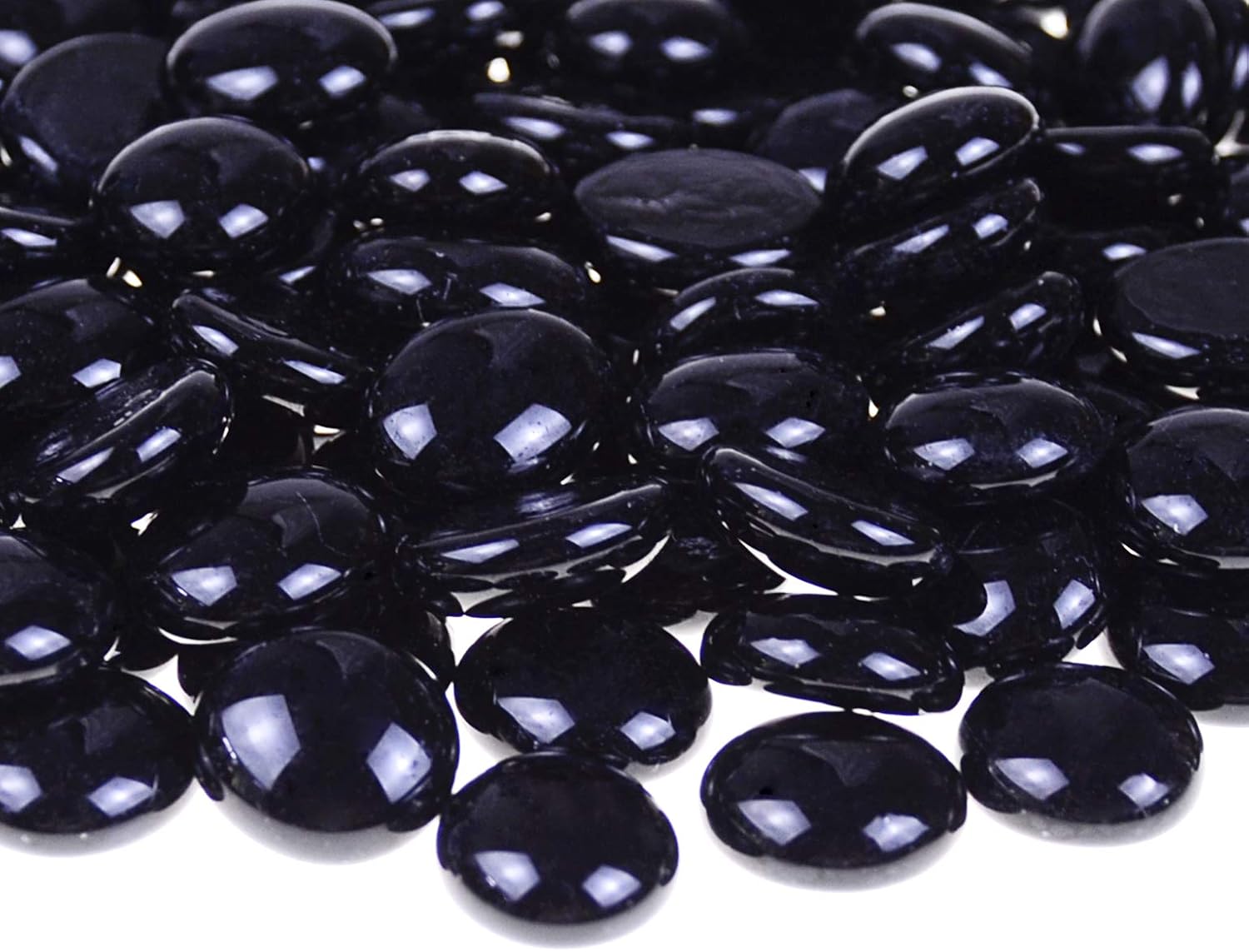 KINGOU Flat Glass Gems/Marbles/Stones/Beads for Vase Filler, Table Scatter, Games - 1 Lbs (17-19mm, Approx. 3/4") - Black