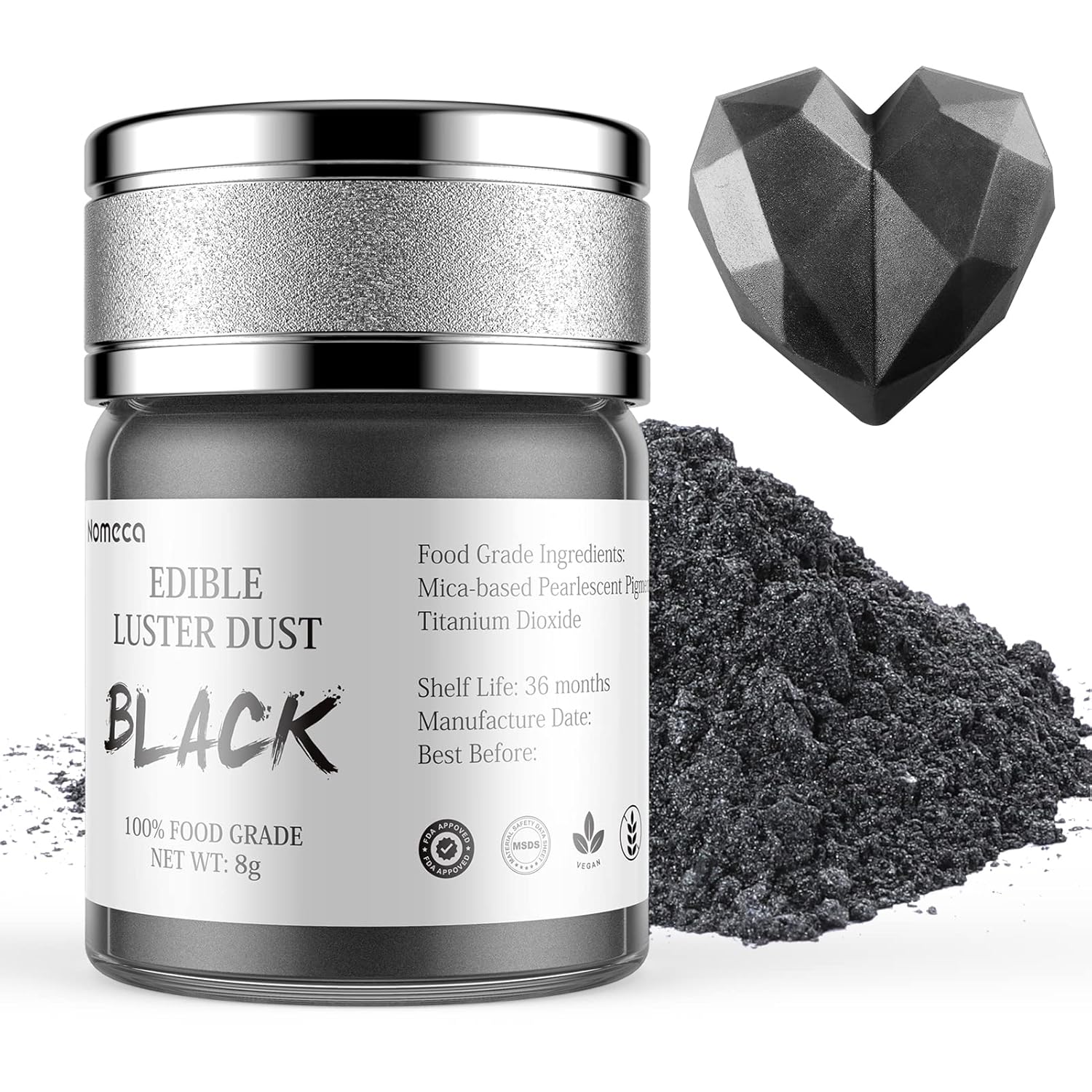 Nomeca Edible Luster Dust, 8 Grams Food Grade Cake Dust Metallic Shimmer Christmas Food Coloring Powder for Cake Decorating, Baking, Fondant, Gumpaste, Chocolate, Candy, Drinks, Cookies - Black