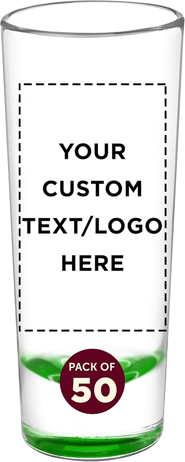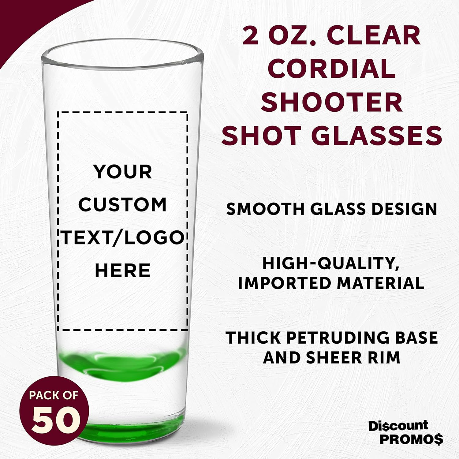 Custom Cordial Shooter Shot Glasses 2 oz. Set of 50, Personalized Bulk Pack - Great for Birthdays, Parties, Indoor & Outdoor Events - Green
