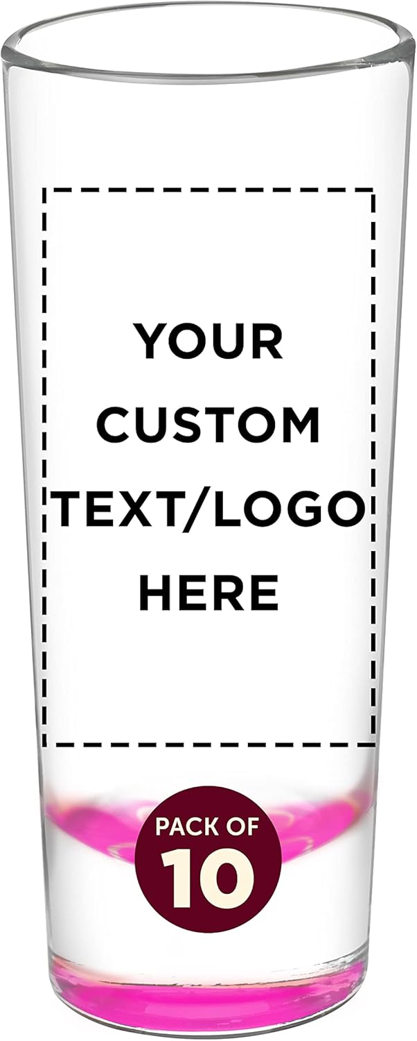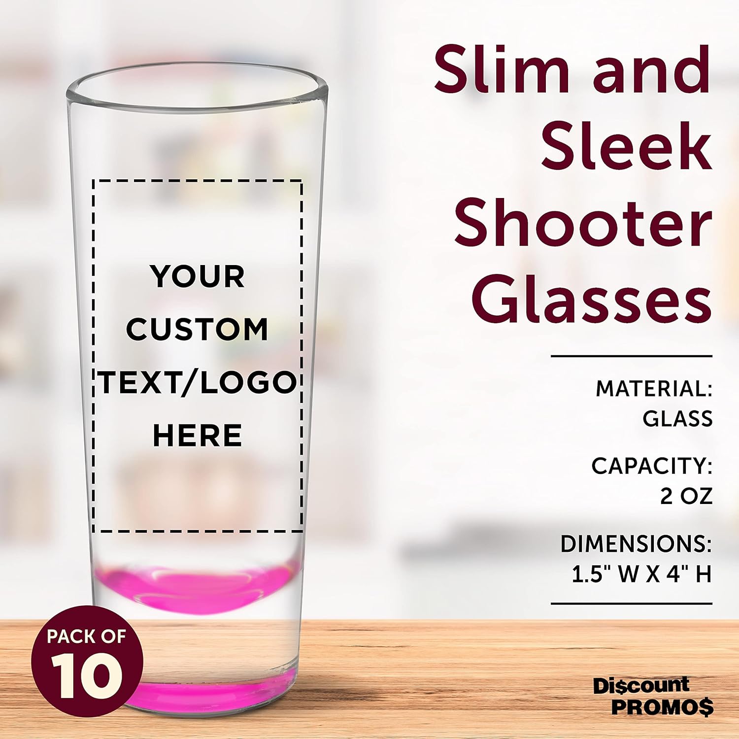 Custom Cordial Shooter Shot Glasses 2 oz. Set of 10, Personalized Bulk Pack - Great for Birthdays, Parties, Indoor & Outdoor Events - Pink