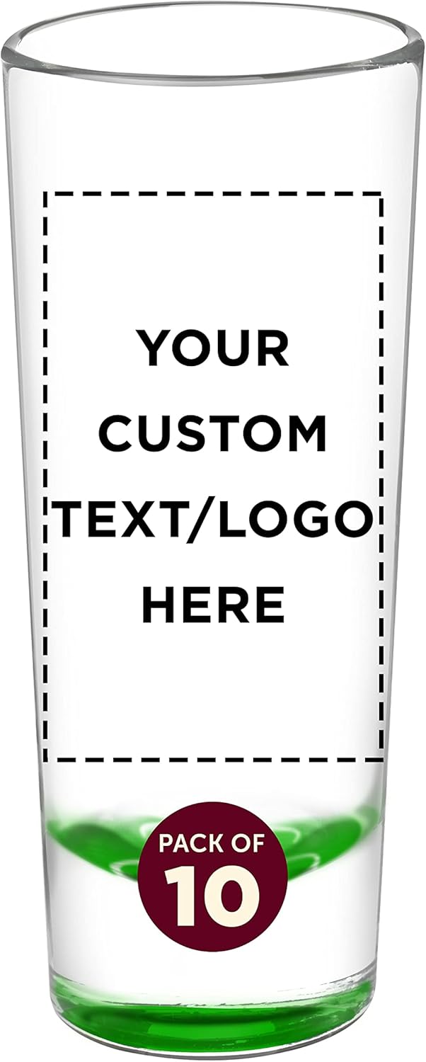 Custom Cordial Shooter Shot Glasses 2 oz. Set of 10, Personalized Bulk Pack - Great for Birthdays, Parties, Indoor & Outdoor Events - Green