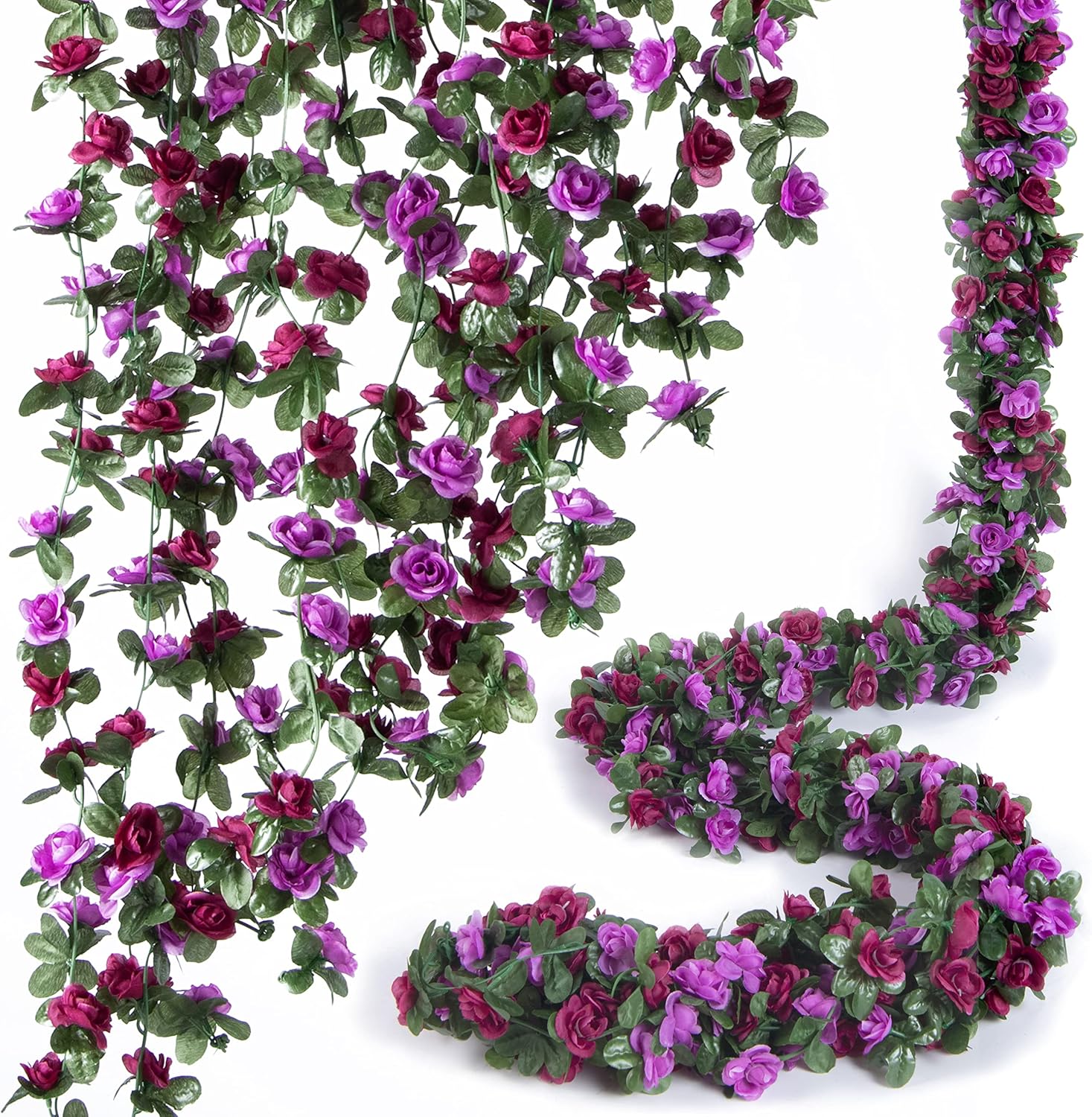 - Material & Features: PONKING fake rose garland is made of silk and plastic. Durable silk and plastic flowers ensures durability and no risk of leaves or flowers dying. The rose vine spares you from endless watering. Different from real rose flowers, our artificial vines with rich color layers and natural appearance will never fade. They will last forever. Nice choice for your daughter's bedroom