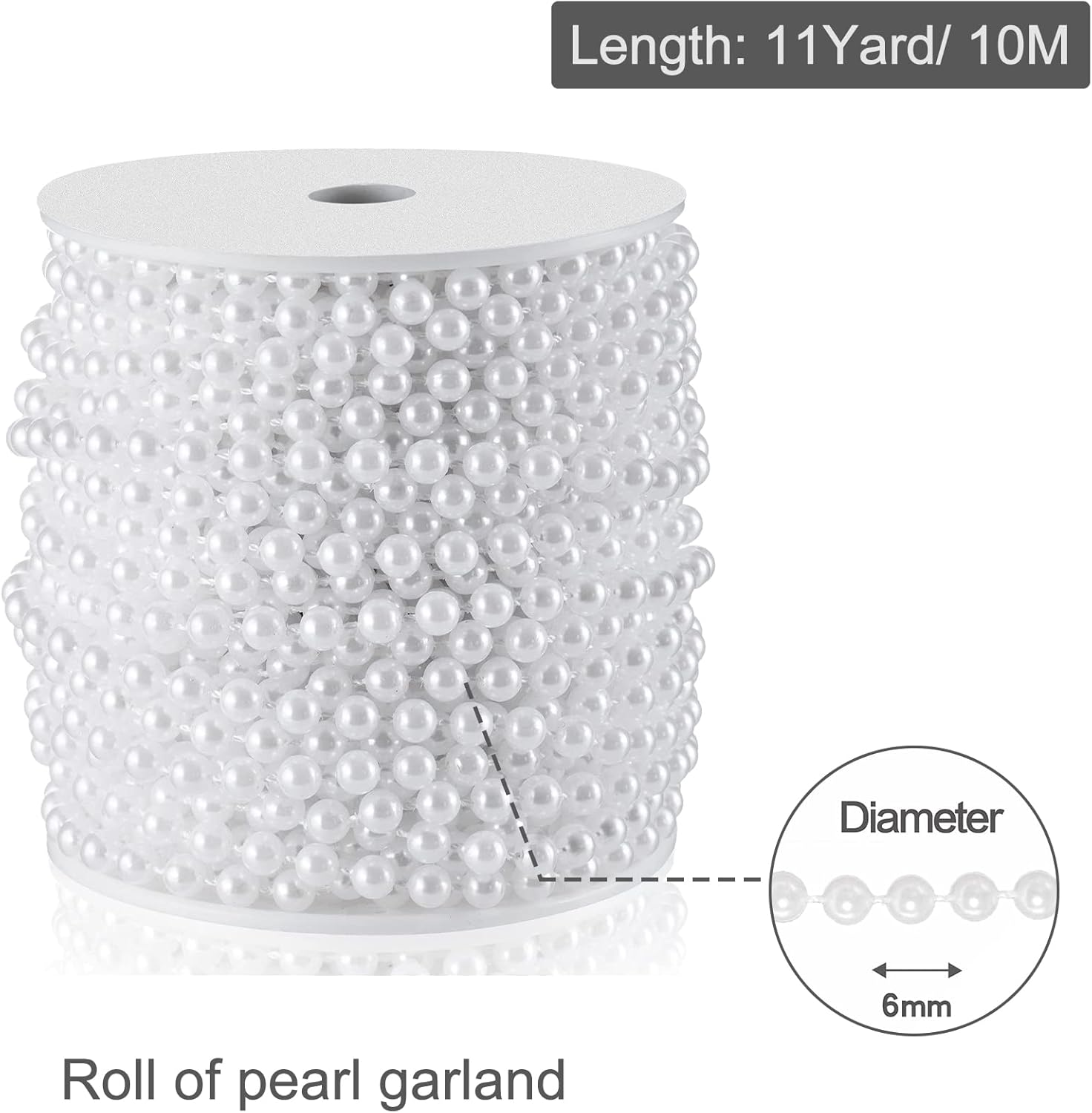 XINHUIDALSQ Craft String of Pearls 6 MM Faux Pearl Beaded, 66 Feet White Garland Bead String for Christmas Tree Decoration, Wedding Party Decoration (White, 6mm/20M)