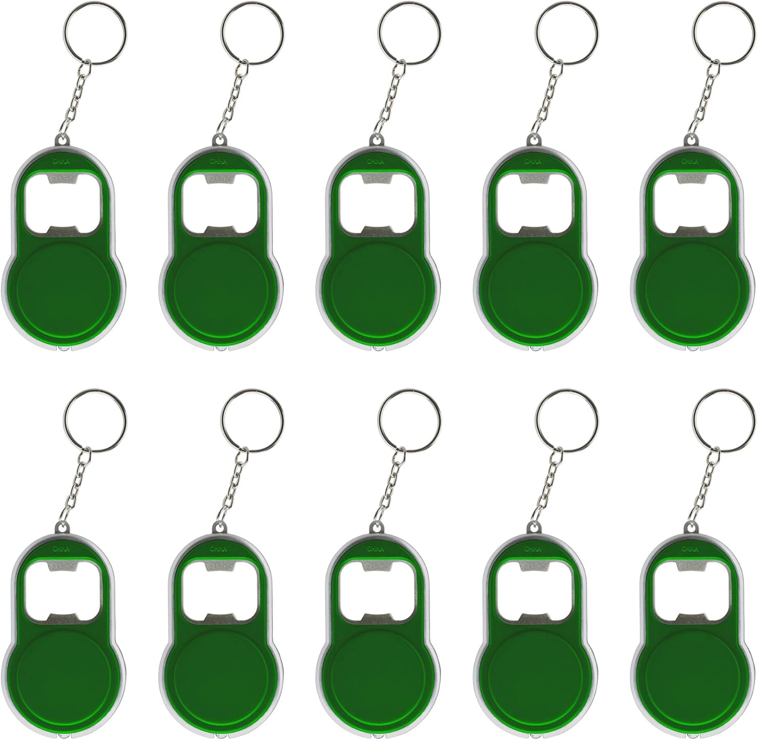 Bottle Opener & LED Keychains Set of 10, Bulk Pack - Perfect for Tradeshows, Party Favors, Other Events - Green