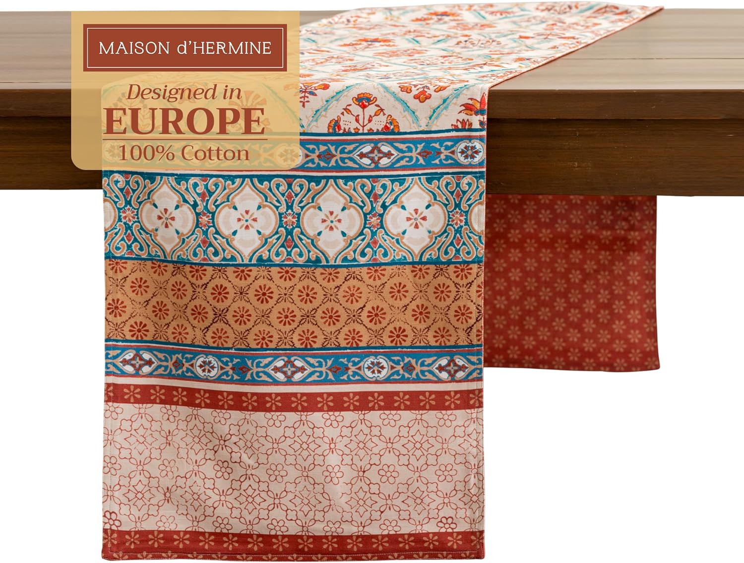 Maison d' Hermine Table Runner 100% Cotton Double Layer Table Runners 108 inches Long for Thanksgiving Christmas Decorations Home Kitchen Dining Party Wedding (Romane, 14.5" x 108")