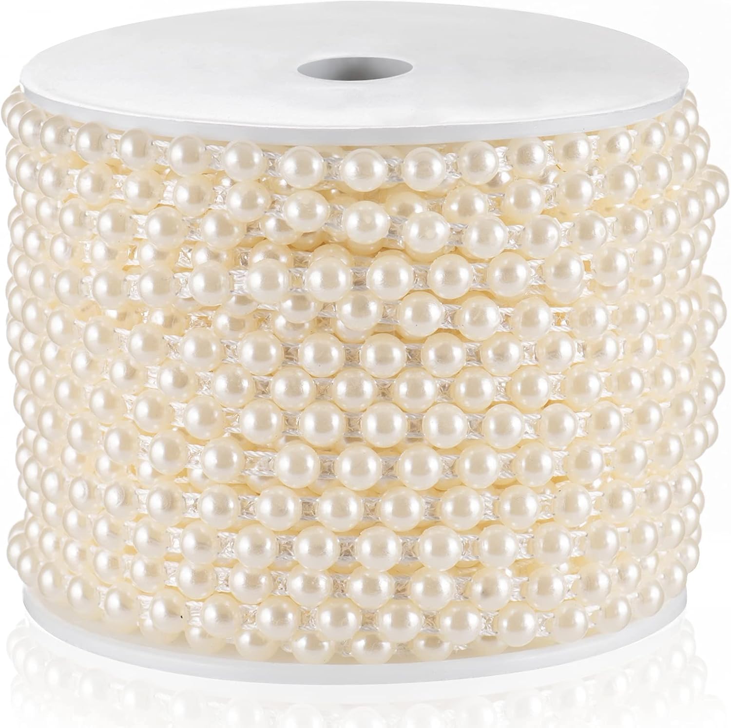 Flat Pearl Garland String 27 Yards, 6MM Half-Round Beaded Spool Roll Crafts for Wedding Decoration (Ivory)
