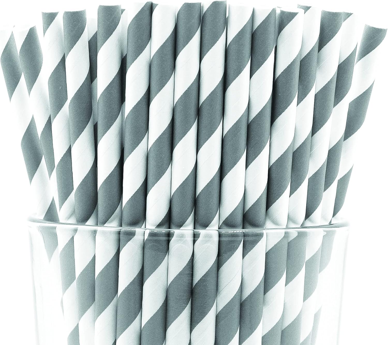- Pack of 900 Gray Swirls wrapped paper straws that are 7.75” long and have a diameter of 0.25”. Made with 4-ply paper which translates into thicker and more resilient straws that won’t wilt or change shape in both hot and cold drinks.