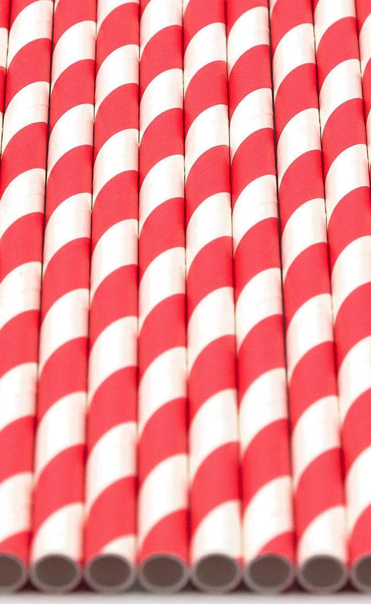 - Pack of 900 Red Swirls wrapped paper straws that are 7.75” long and have a diameter of 0.25”. Made with 4-ply paper which translates into thicker and more resilient straws that won’t wilt or change shape in both hot and cold drinks.
