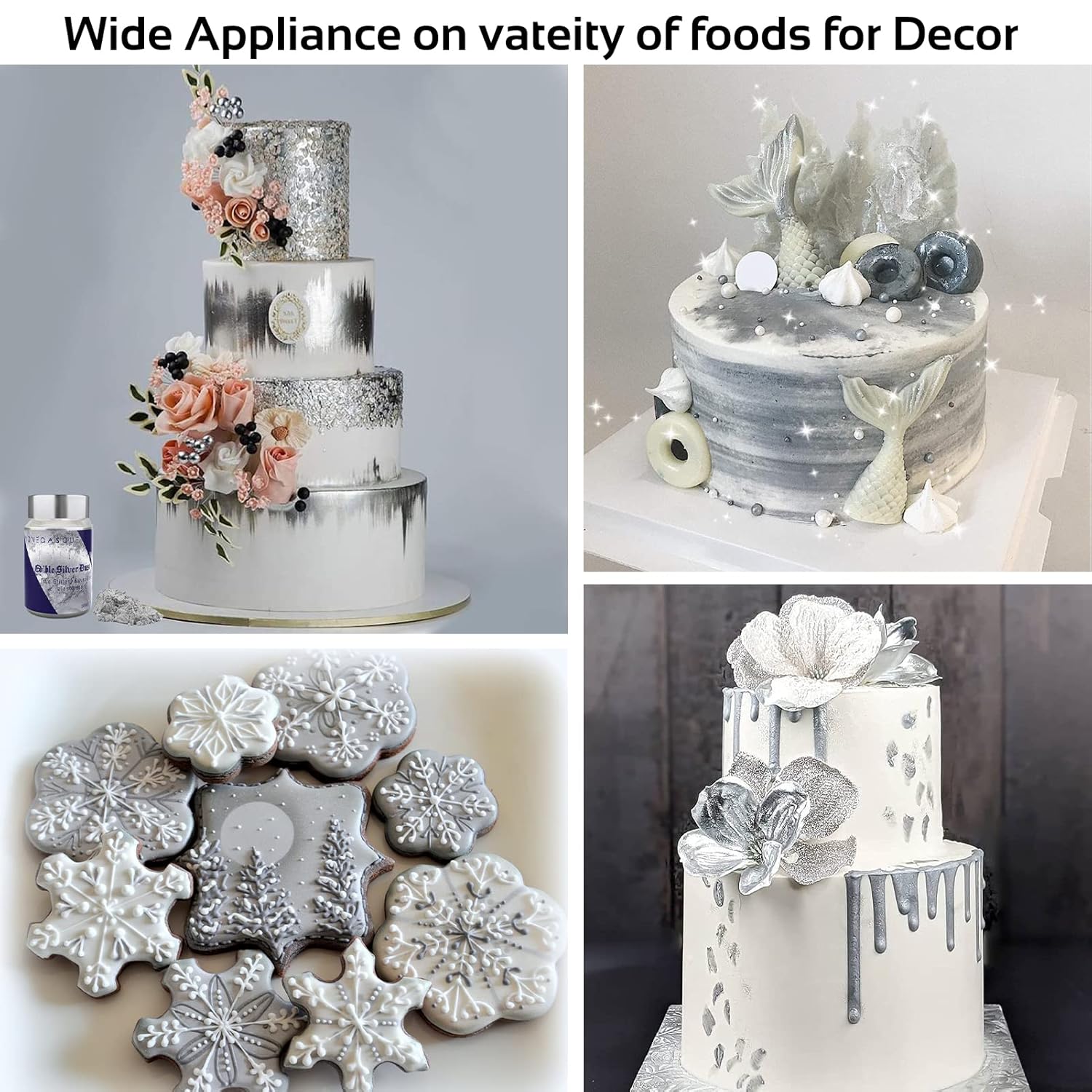 - 【Easy to Use】Whether you are a professional cake artist or a DIY baker, Jelife edible silver luster dust powder for strawberries is easy to use. Beginner-friendly and edible gold dust also can be brushed or used spray gun for smoothing when mixed with vodka, grain alcohol, or oil-based flavorings