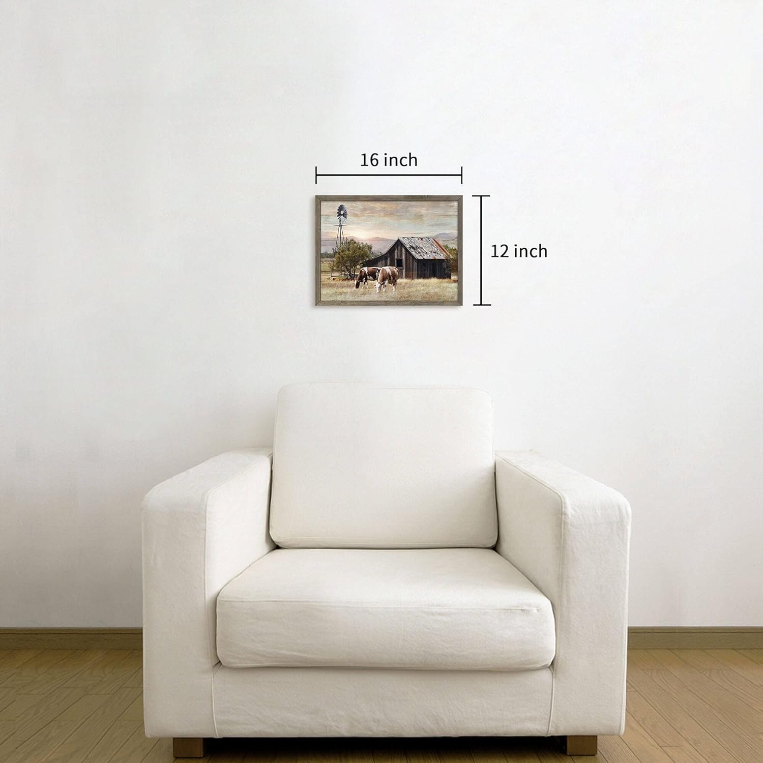 - Framed Barn Wall Art: Fine art giclee artist grade picture cow by premium fade-resistant archival inks guarantee perfect color