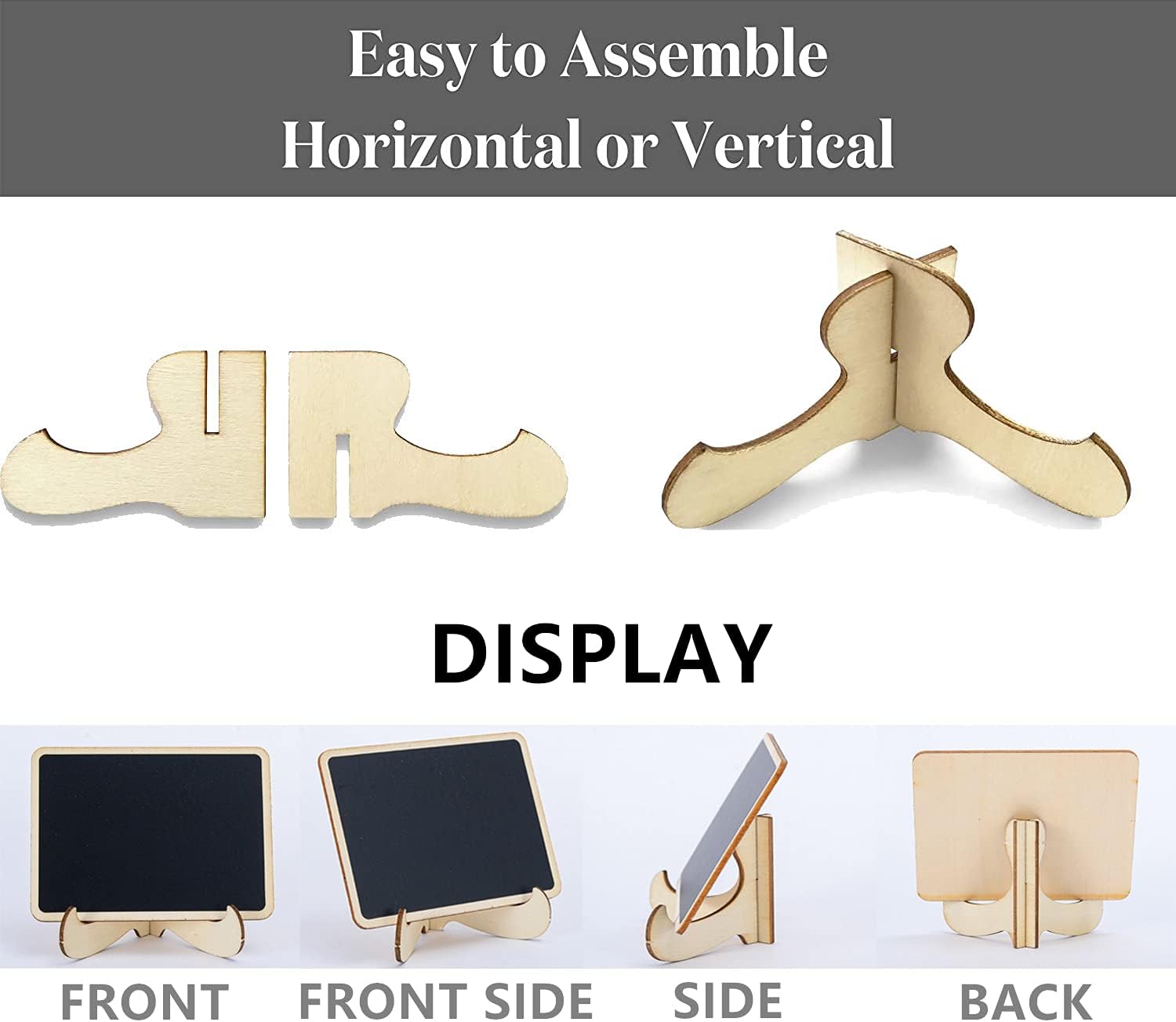 - Wood Material: Our mini chalkboards and stands are made of High quality wood,It won't get moldy because of dampness ackage includes 20 mini chalkboards, the head of the chalkboard is 4" X 3", there is plenty of room for you to write