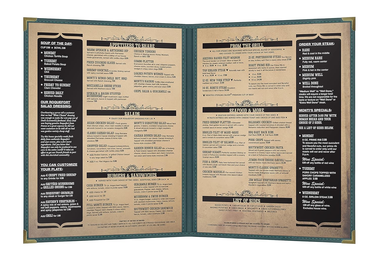 - MENU HOLDER AVAILABLE SIZES: 8.5" x 11", 8.5" x 14"; We offer a variety of menu cover sizes to meet your specific presentation needs, including 8.5" x 11" as a versatile standard size suitable for most menu types; 8.5" x 14" for larger menus with multiple categories.