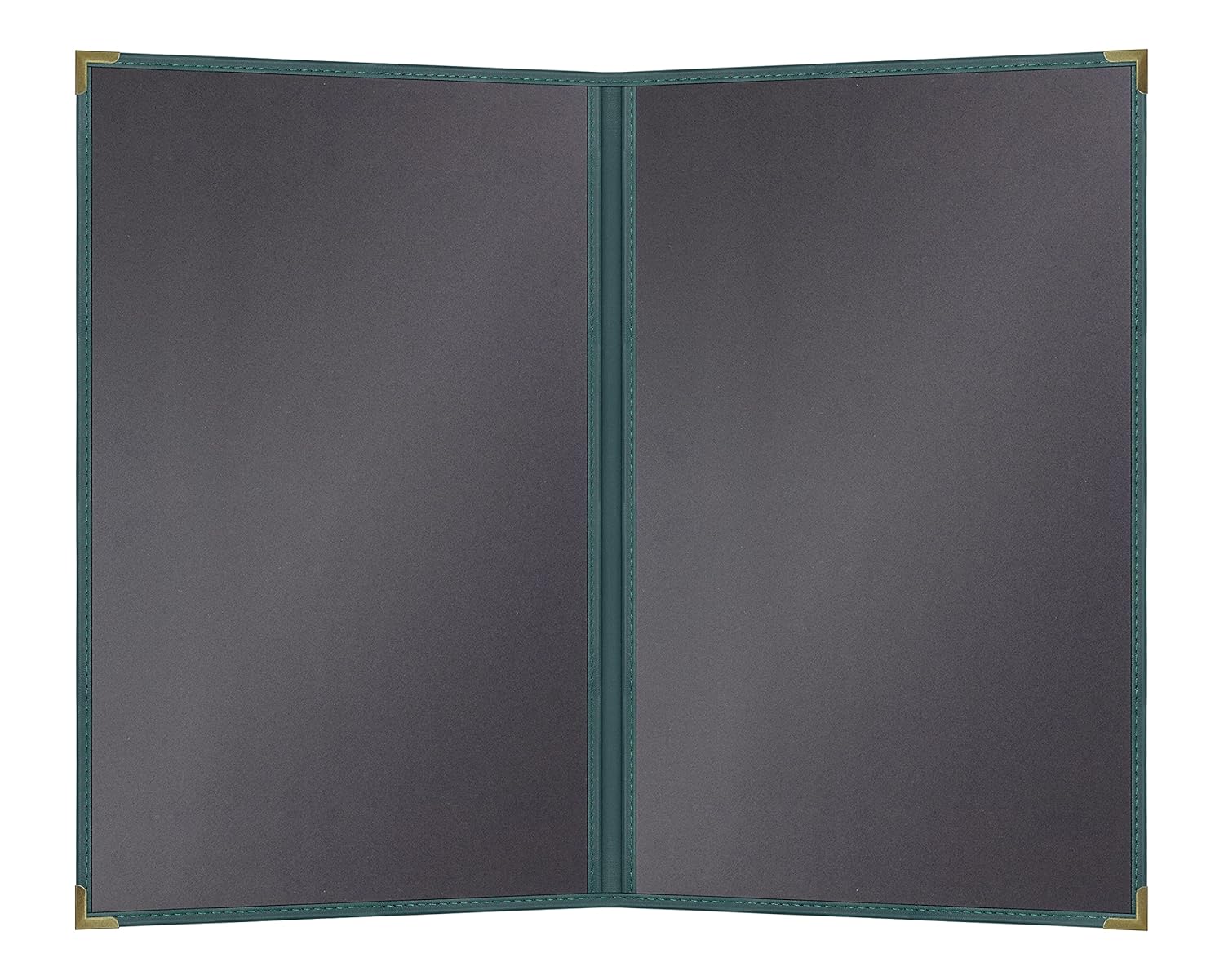 Goodsmart Pajco Style Restaurant Menu Covers – Pack of 10, Side-Loading Menu Holders, Single Stitched Edge, Clear Vinyl Menu Sleeves, Leatherette Trim, Gold Corners, Green, 2 View (8.5" x 14")