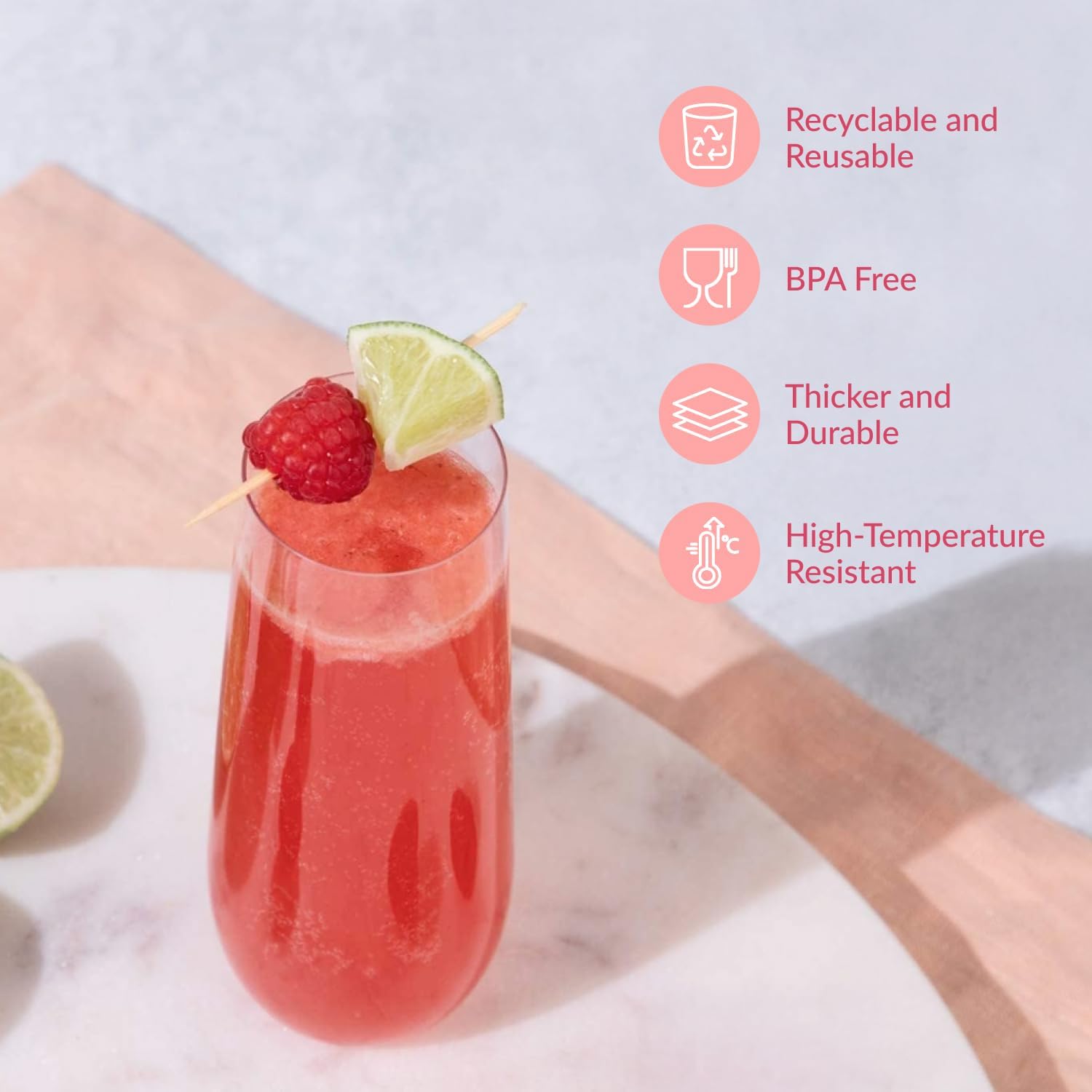 - 9 oz Capacity with Glass-Like Clarity - Each flute holds 9 oz and features crystal-clear construction, making these champagne glasses look sophisticated while remaining shatterproof
