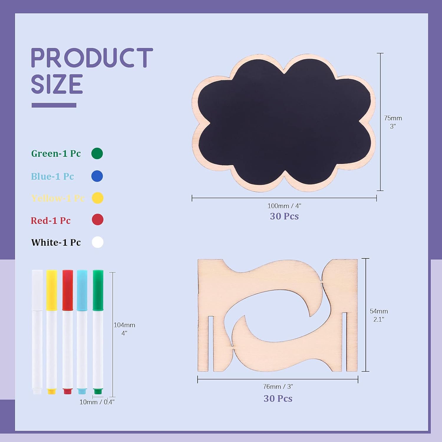 - ✿✿What You Get ------ In this kit, you will get 30Pcs mini chalkboards signs with liquid chalk marker assortment kit, including 30Pcs Clouds shape chalkboards, 5Pcs different color liquid chalk marker (green, blue, yellow, red and white)and 30Pcs chalkboards stand. These chalkboards can meet your daily needs, and you don’t have to worry about them being insufficient.