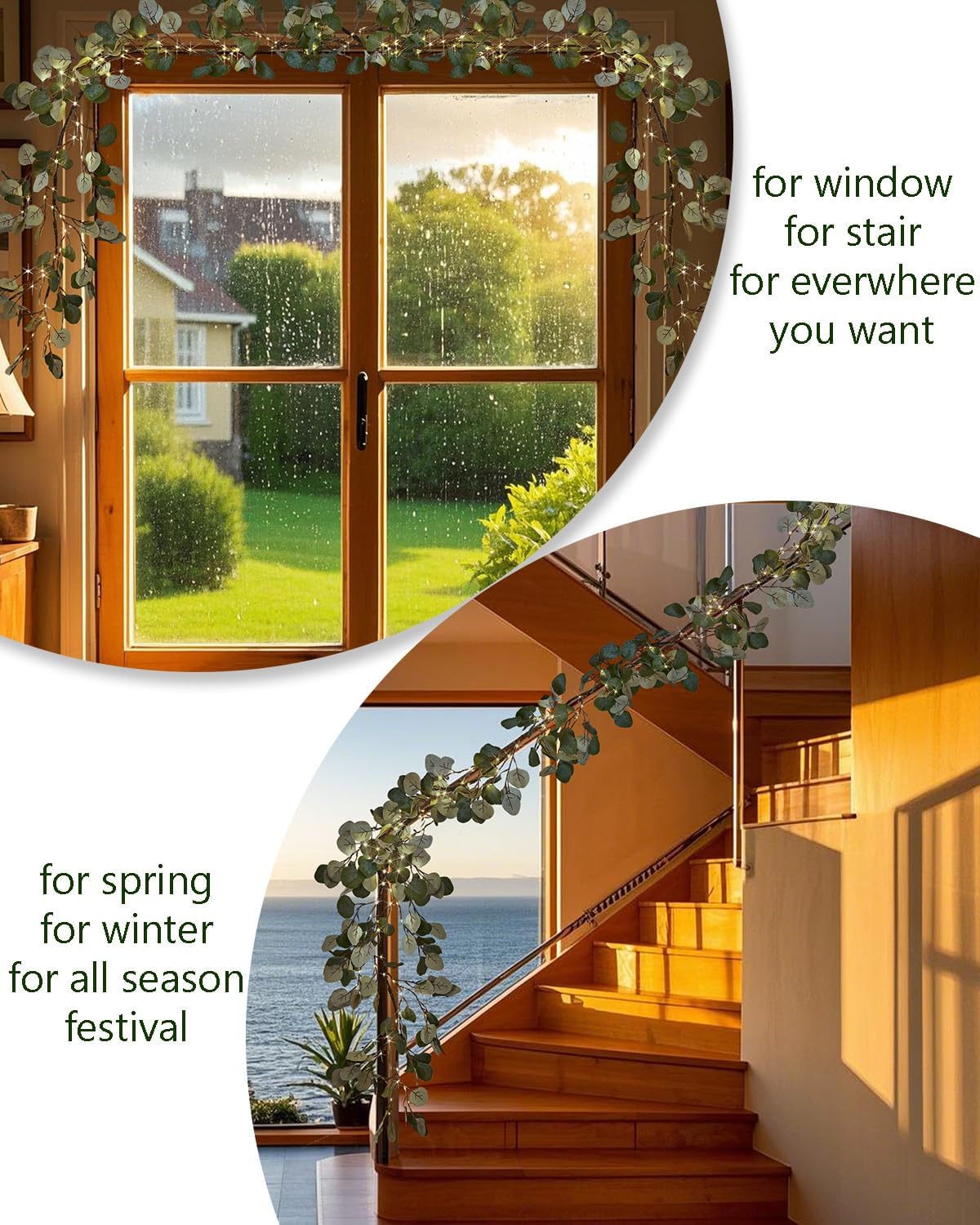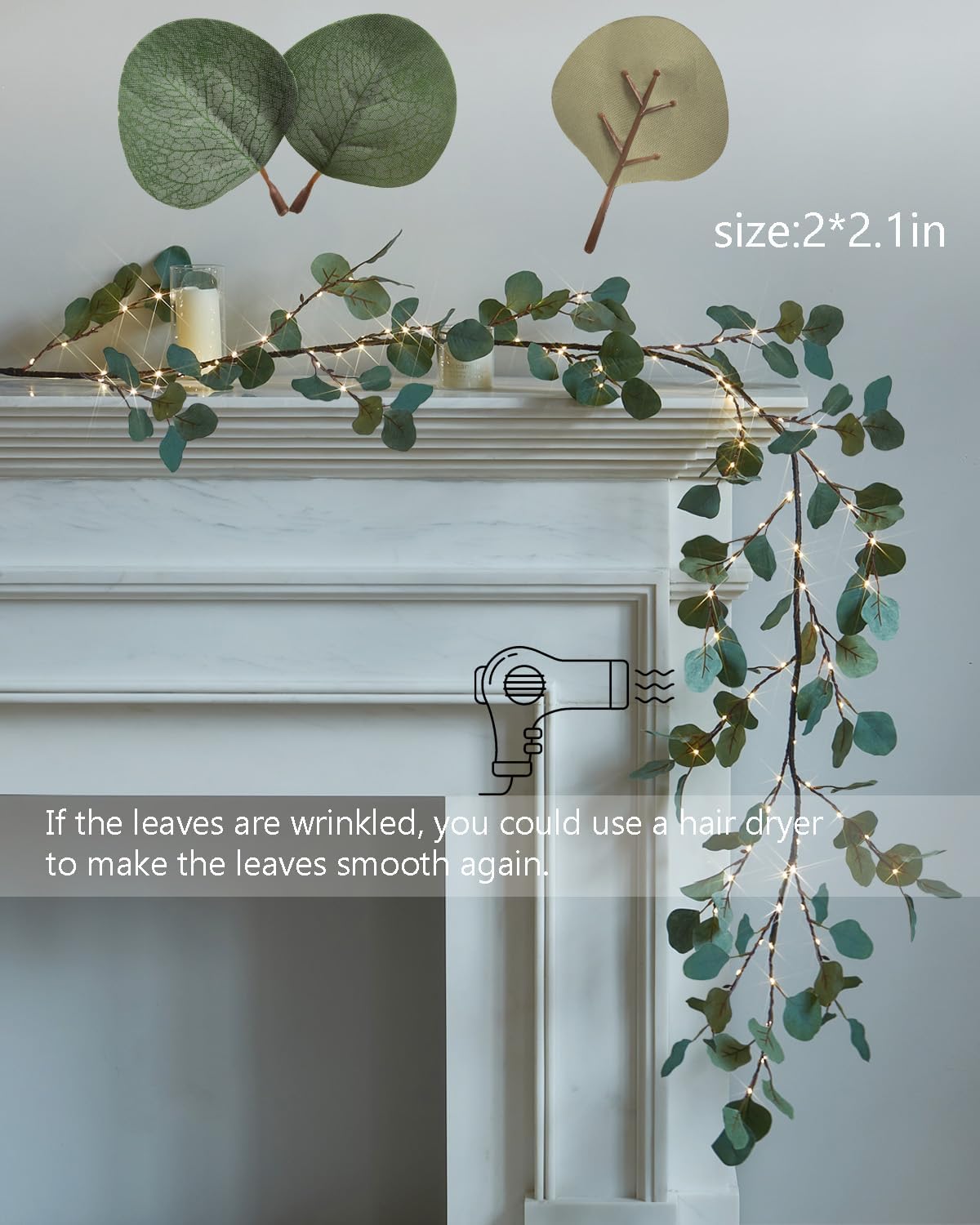 - 🎄【Realistic Lighted Garland】Garland branches are elaborately crafted with delicate brown bark texture.The silvery-green Eucalyptus leaves have realistic veining and detail, bringing the look of nature to your home
