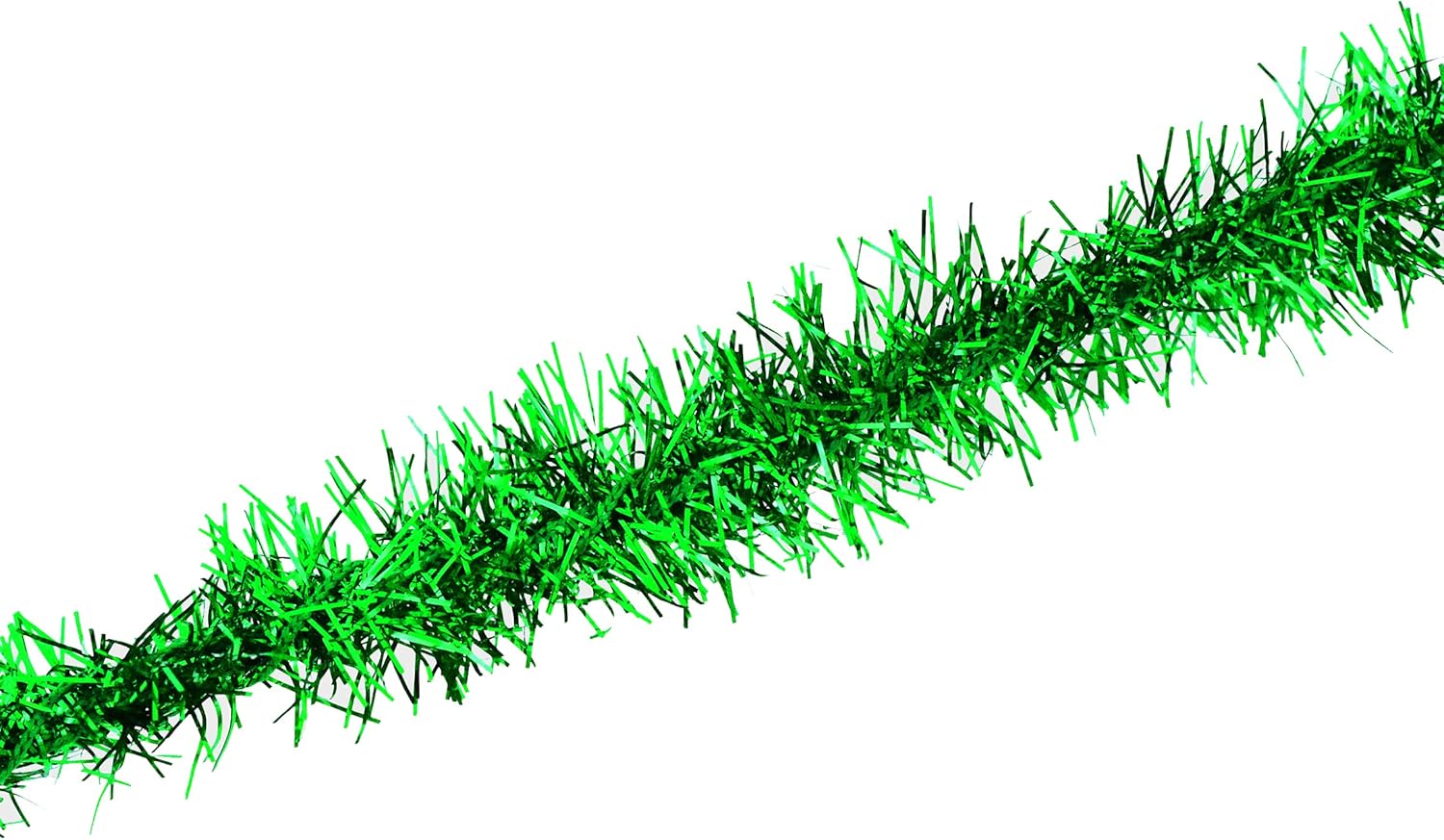 - Long Bulk Reusable Christmas Garland Tinsel Roll: The 0.75β wide twisted green garland for Christmas tree is 30 feet in length. Great for living rooms, bedrooms, schools, & supermarkets, the Christmas tree green tinsel also pairs well with string lights.