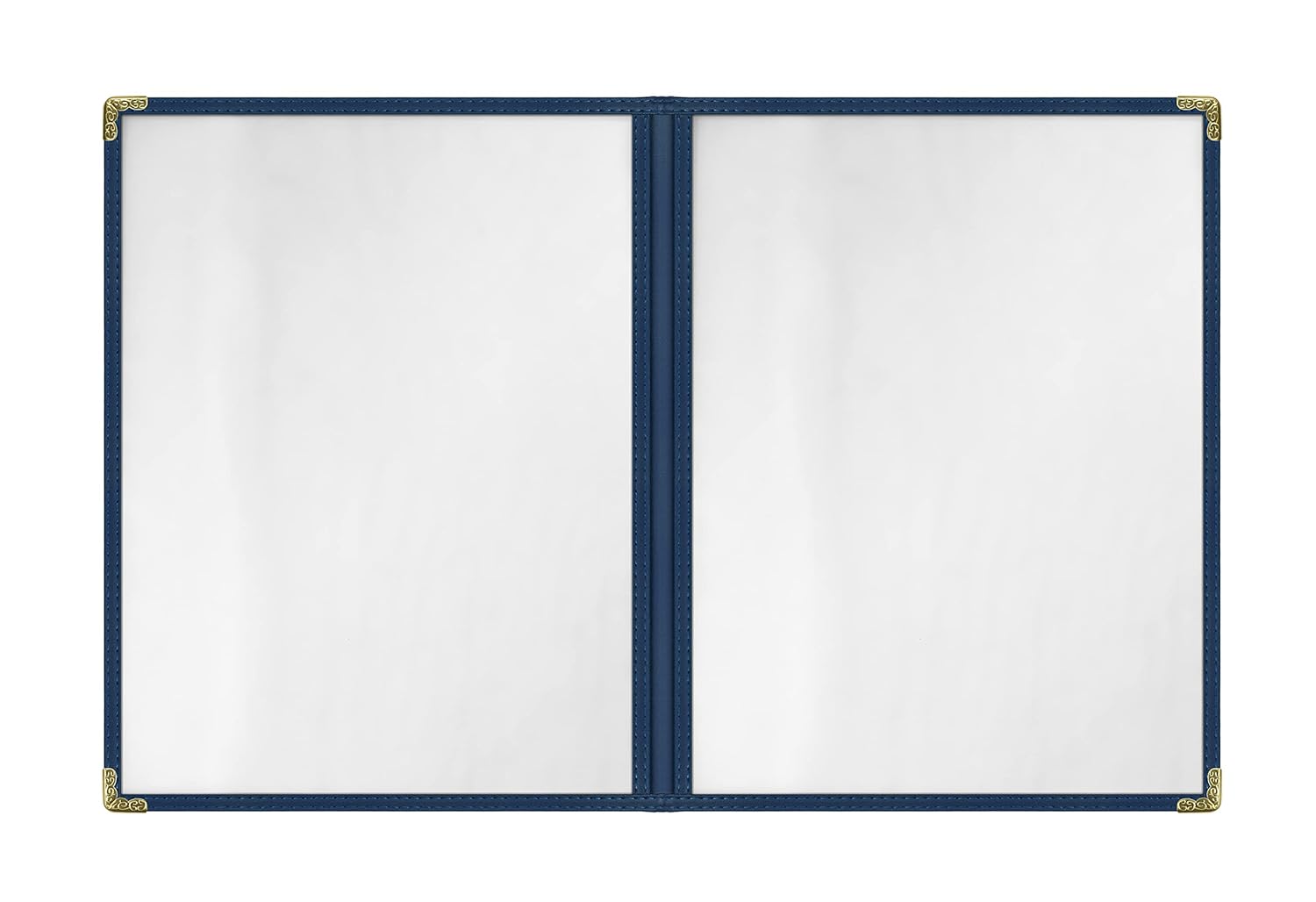 Goodsmart Restaurant Menu Covers - 25 Pack Blue 8.5" x 11", 2-Page/4-View, Side-Loading Vinyl Menu Holders, Clear Sleeves, Double-Stitched Edge, Leather-Style Café Menu Covers with Gold Corners