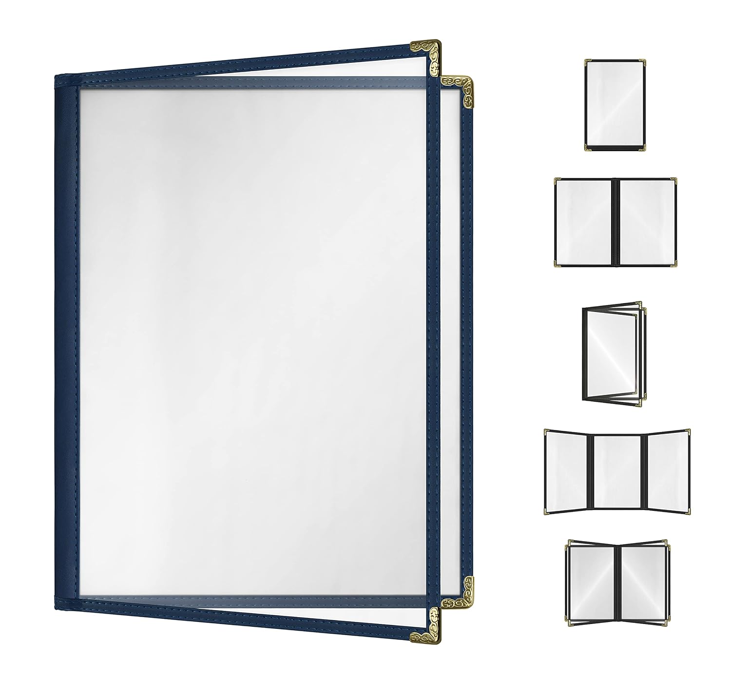 - ✅Gold Decorative Corners: The gold decorative corners add a sophisticated touch to your menu covers, creating a refined, upscale look that enhances the overall presentation. The gold accents complement the blue color beautifully, making your menu stand out in any setting.