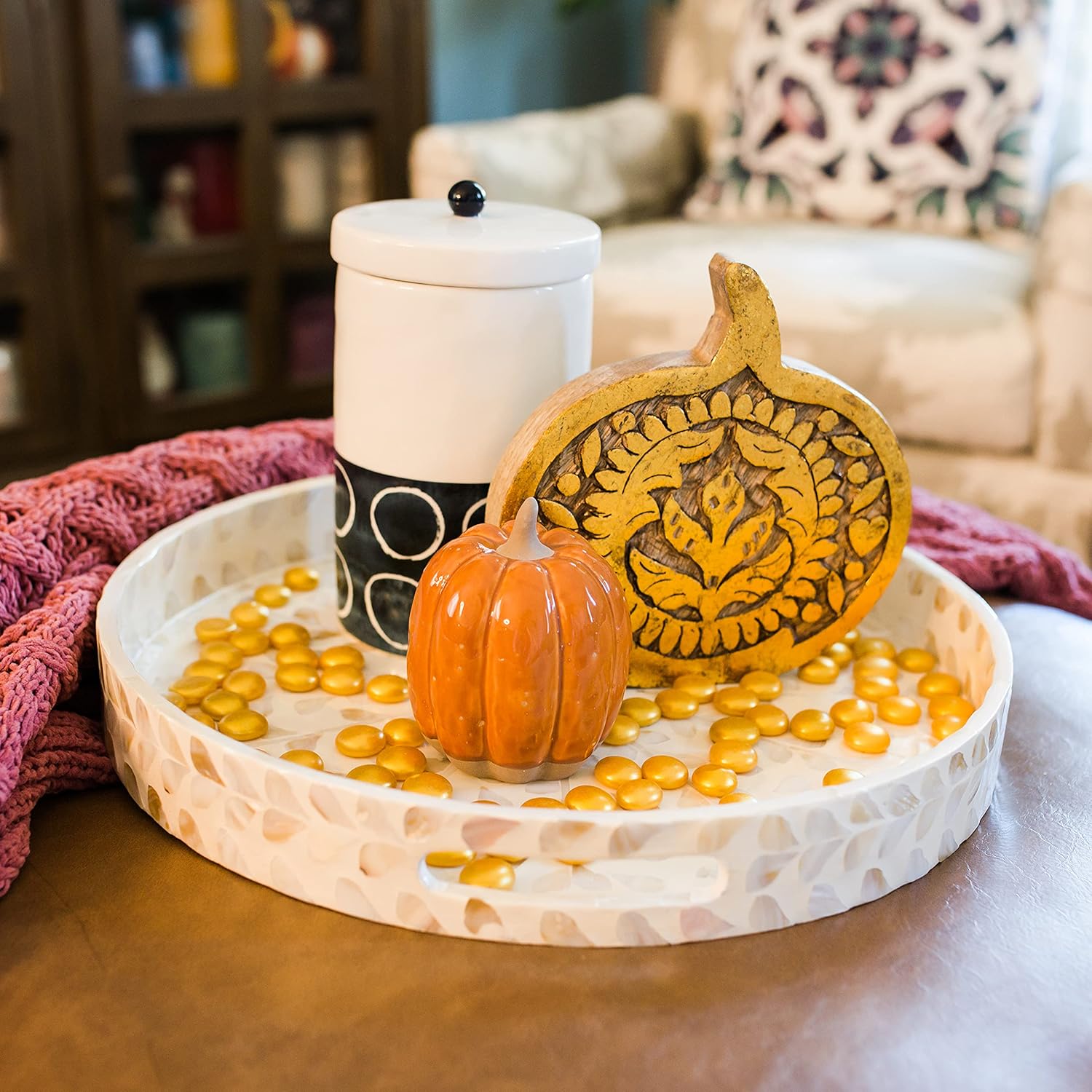 Galashield Flat Glass Marbles for Vases Gold Glass Gems Beads Pebbles Vase Filler (5 LBS, Approx. 540 PCS)